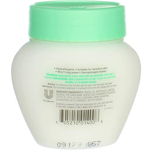 Details: Pond’s Cold Cream removes makeup and improves skin’s moisture, texture, and smoothness. Unlike ordinary makeup removers, Pond’s Cold Cream is 50% moisturizer. It melts away all traces of your toughest makeup, while infusing skin with vital hydration. Clean, soft, glowing skin – all in one step!