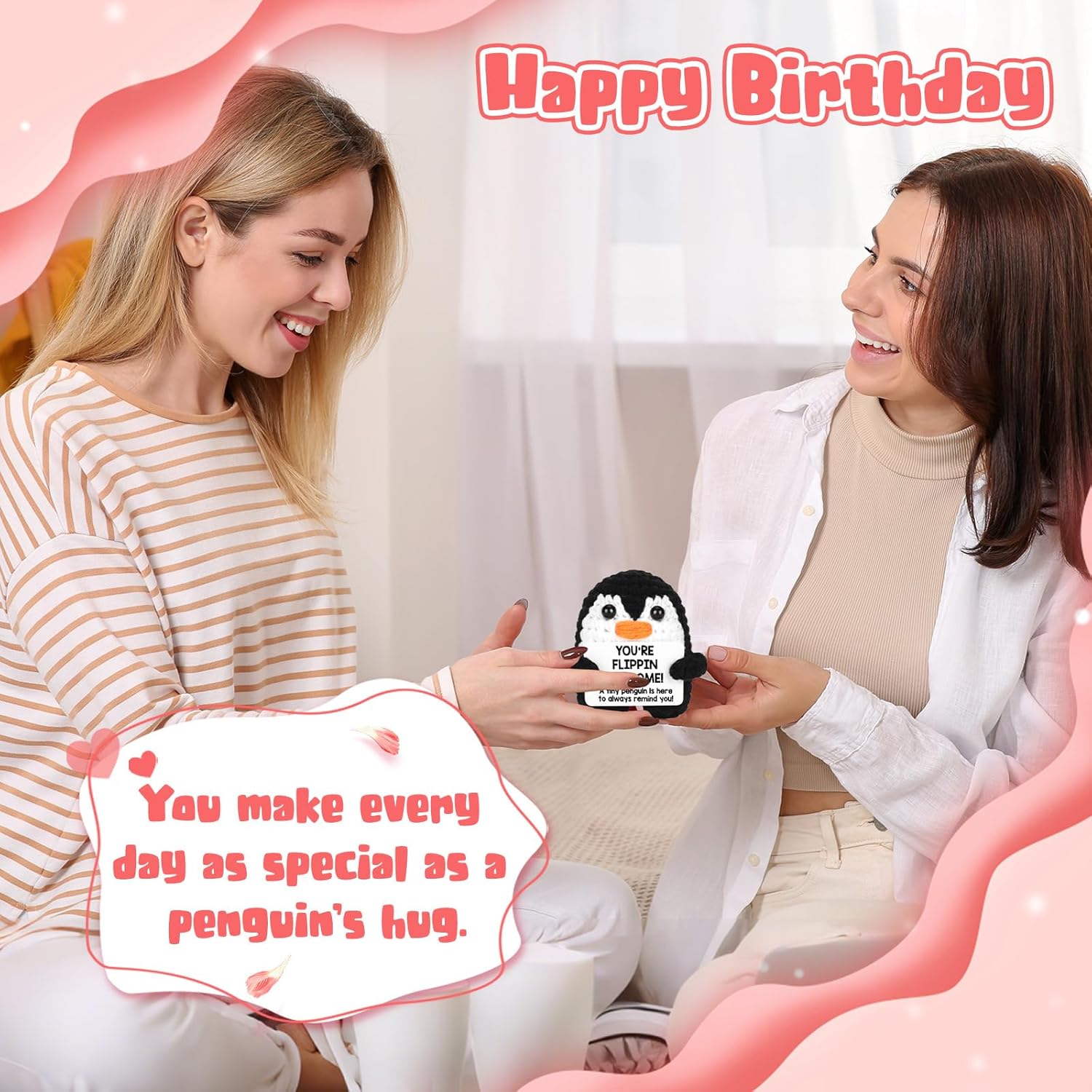 - Affirmation Valentine‘s Day Gifts for Women: Our crochet emotional penguin comes with a motivational card that says “You’re Flippin Awesome!”, giving you a daily boost of confidence and positivity. Whenever you feel stressed or overwhelmed, the cheer-up penguin gift will encourage you with motivating energy and affirmation to keep going