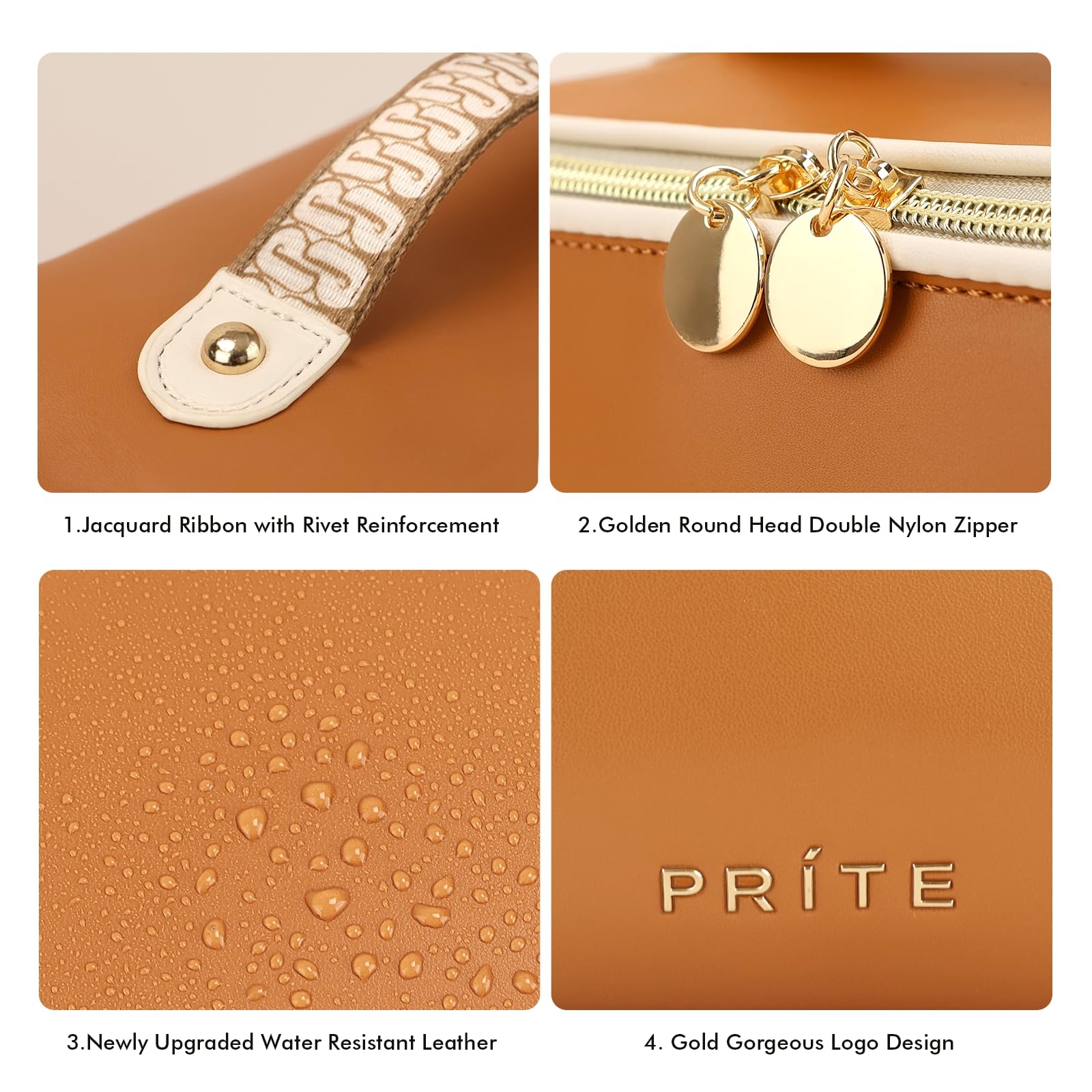 - 【Details that Elevate Your Beauty Routine】 This makeup bag is equipped with custom gold metal zippers and pulls, making closure effortless and adding a touch of elegance to your daily routine. The reinforced leather straps ensure durability and ease of carrying. The brand new 3D TPU logo adds a stylish touch. Inside, there is a separate inner pocket for orderly storage of your cosmetics.