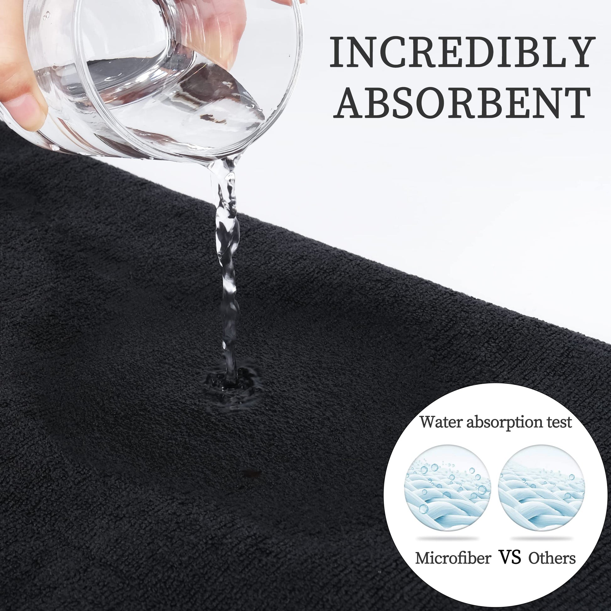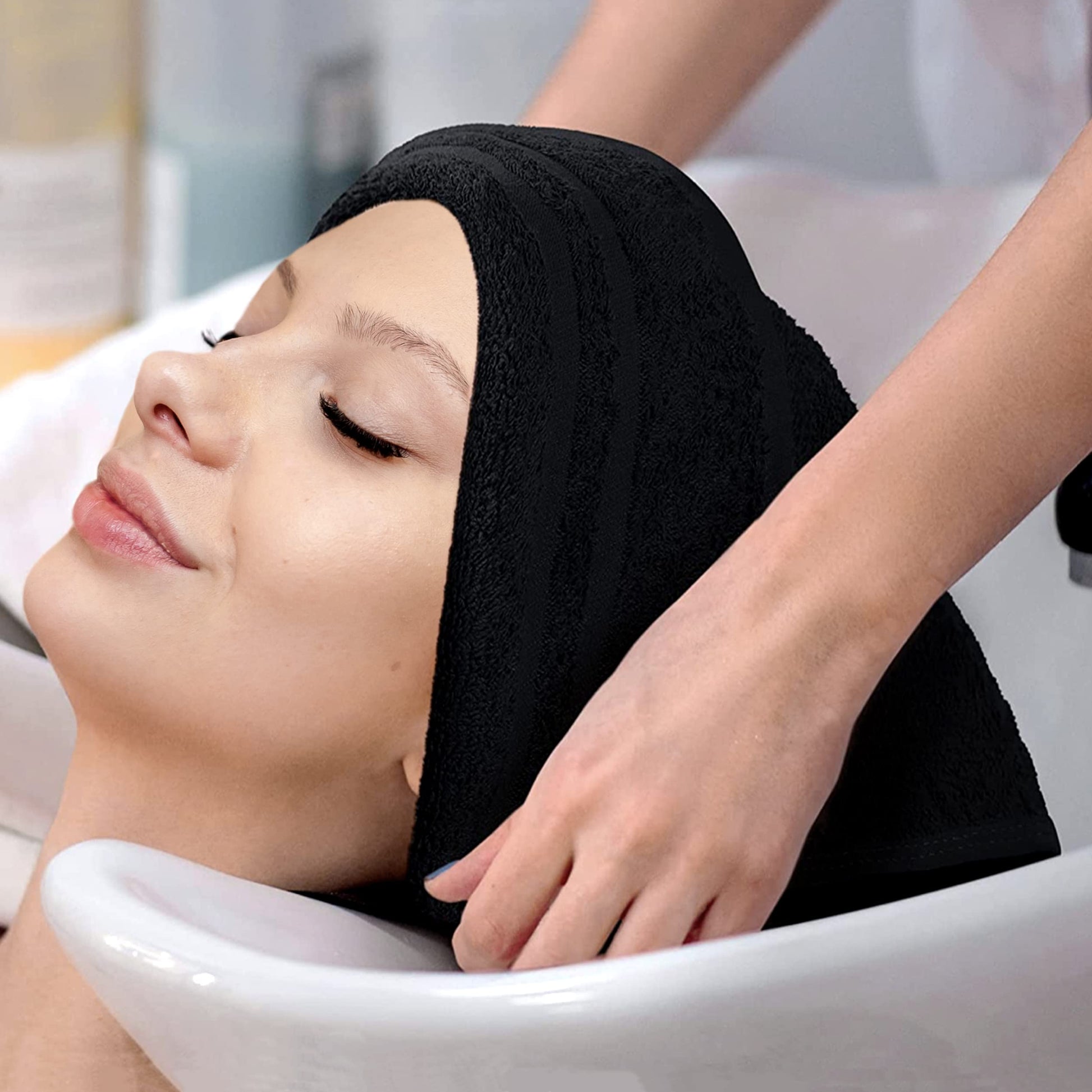 Details: ProHomTex Microfiber Hair Drying Salon Towels, Set of 6 (16‘' x 29'') Professional Super Absorbent Quick Dry (Black) (6)