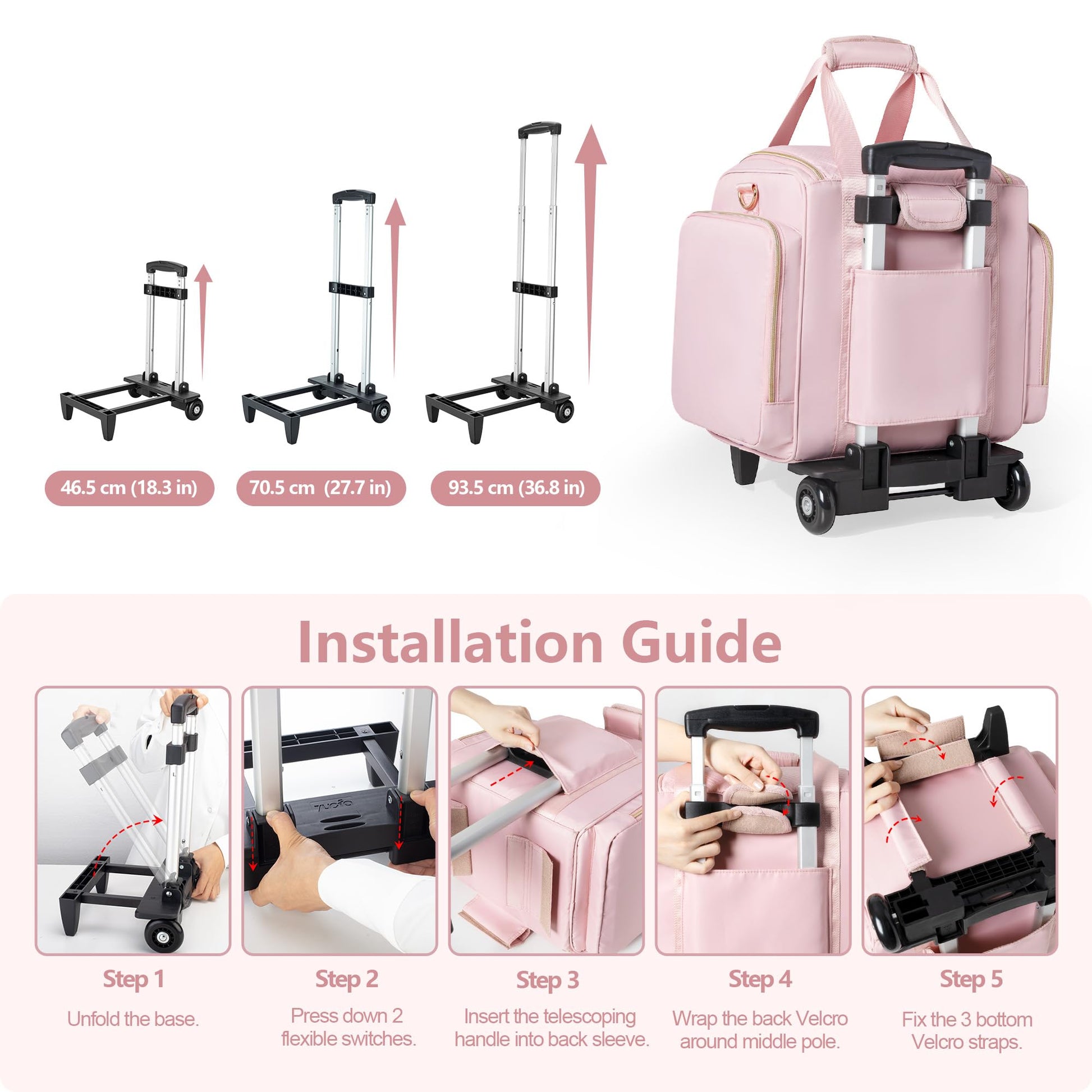 Prokva Rolling Makeup Case with 4 Removable Bags, Professional Makeup Train Case with Wheels, Makeup Artist Travel Bag with Brushes Storage Section, Pink (Patent Design)