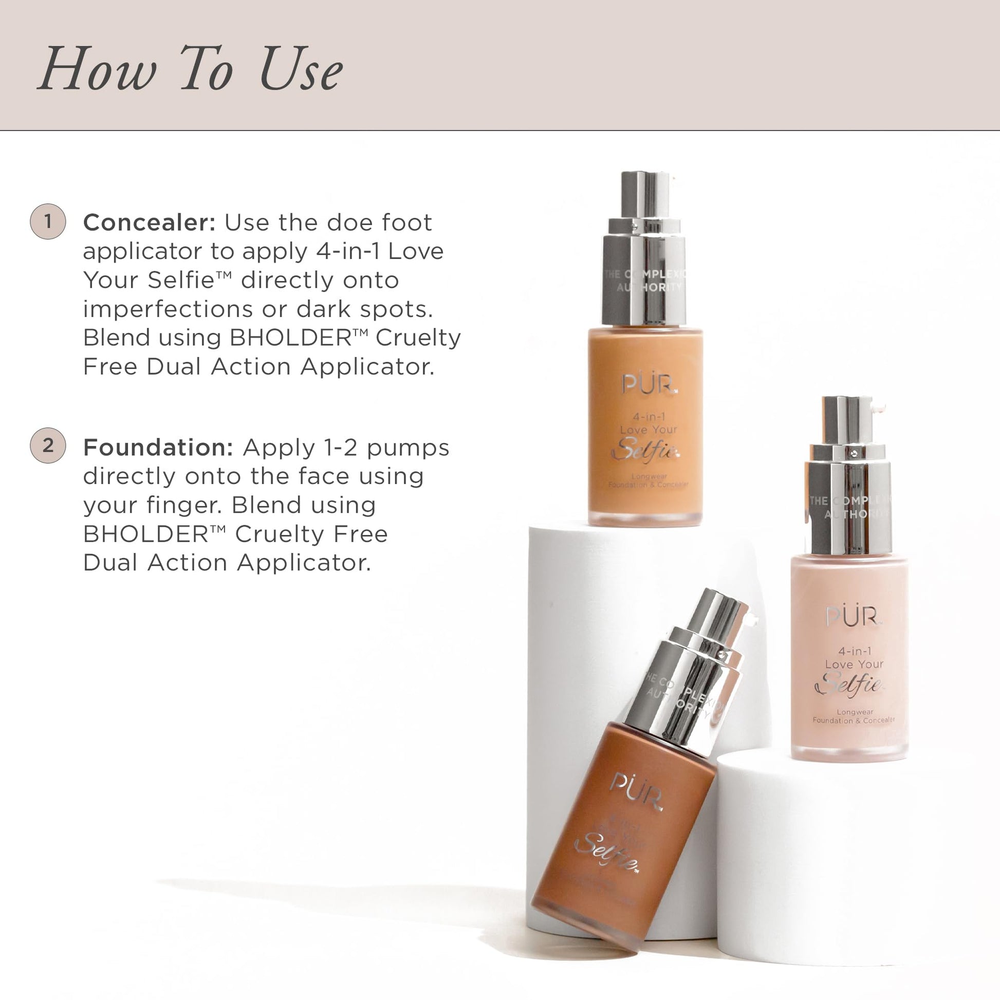 - Multitasking Foundation & Concealer: PÜR’s 4-in-1 Love Your Selfie is a skincare-infused medium-to-full coverage Longwear Foundation & Concealer that instantly helps conceal, correct and improve the skin’s appearance with flawless-looking coverage.