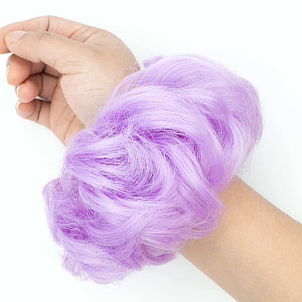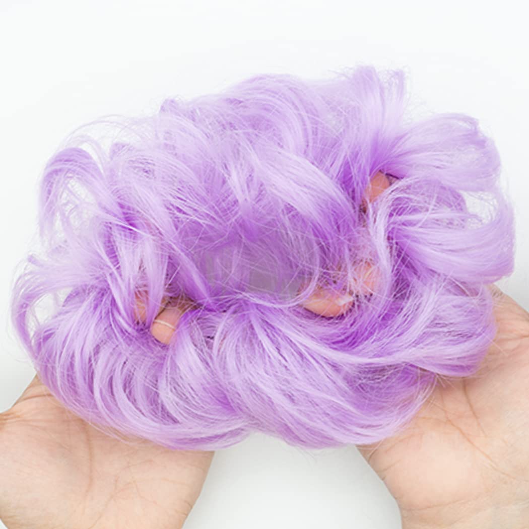 QTHQTFL 2pcs Messy Bun Scrunchie Hair Pieces - Elastic Rubber Band Curly Wavy Synthetic Ponytail Extensions for Women Girls (Light Purple)