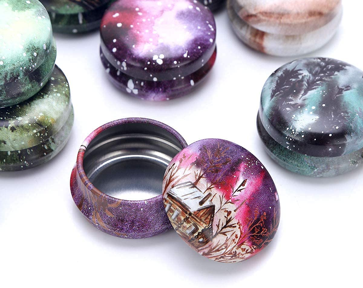 Rarapop 12 Pack Reusable Mini Round Tinplate Candle Tin Jars with Lids, 20ml Small Starry Sky Travel Tin Cans Refillable Empty Container Bottle for Lip Balm, Salve, Eye Shadow, Powder