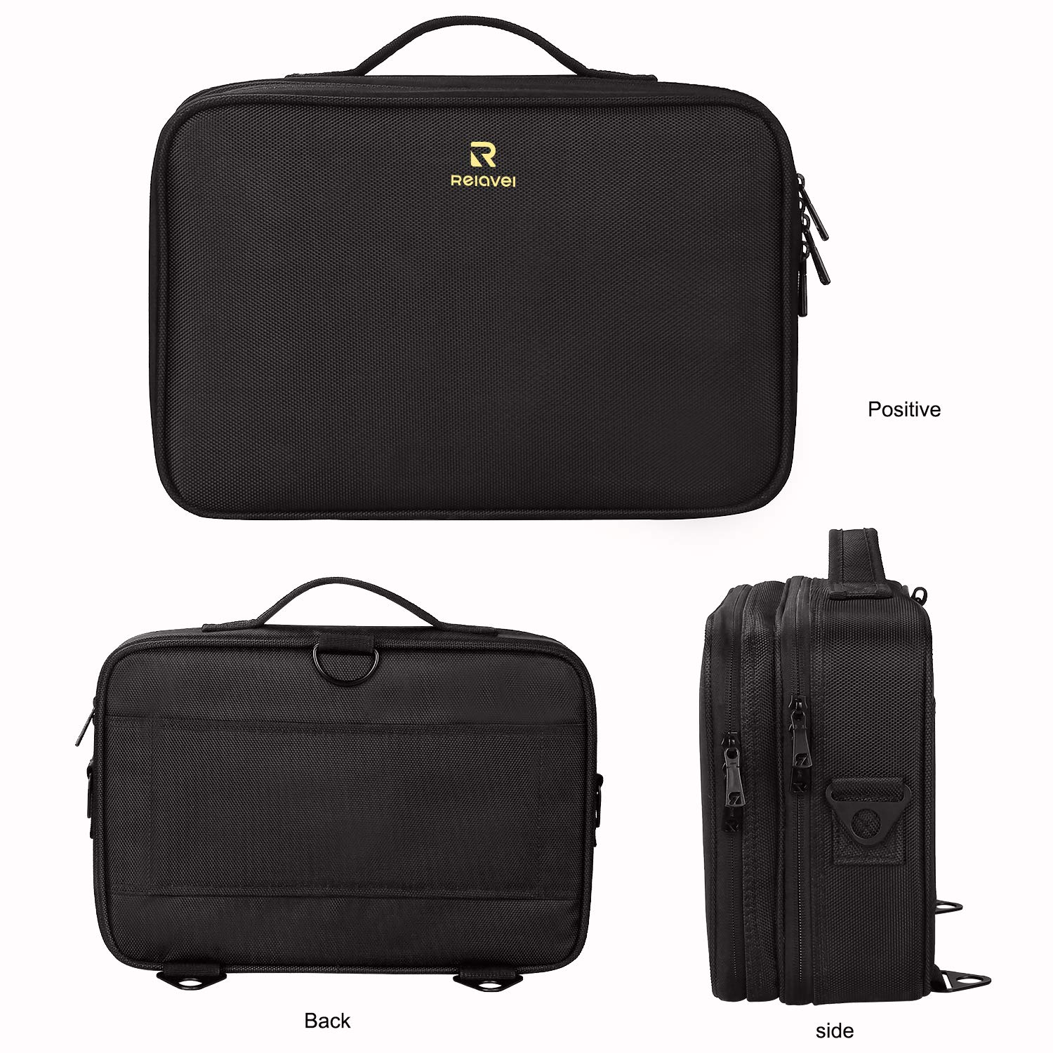 Relavel Makeup Bag Travel Makeup Train Case 13.8 inches Large Cosmetic Case Professional Portable Makeup Brush Holder Organizer and Storage with Adjustable Dividers and Shoulder Strap Black