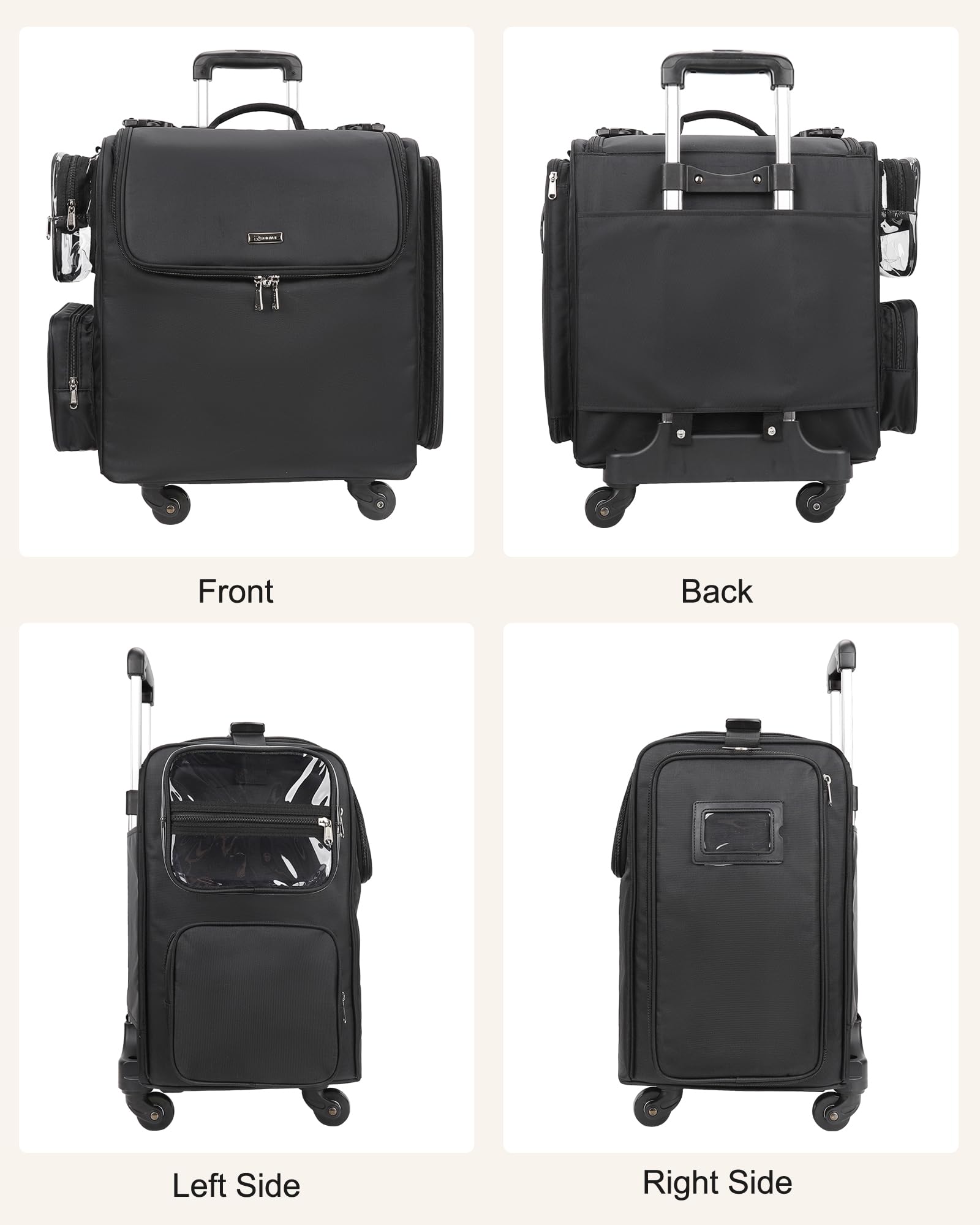 - Multi-Compartment and Large Capacity: With 6 Pcs clear makeup bags for hair accessories, can be used in combination. Pockets inside and outside, a special clear pocket for tissue for easy access. Lockable double zippers and card holder. The cosmetology case on wheels has a large capacity, which can meet the storage needs of a professional hairstylist.