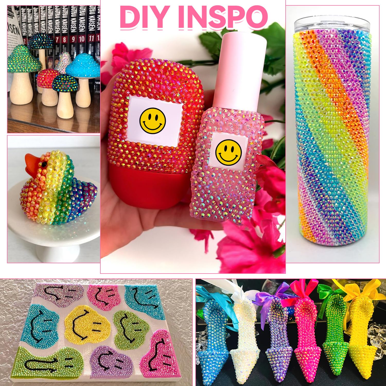 - PACKAGE INCLUDED — This bedazzling kit comes with a 28-grid storage box filled with approximately 34,000 vibrant 3mm resin rhinestones in a beautiful mix of colors. For easy and precise application, the kit also includes 1 precision tweezer, 1 pickup pen, and 3 tubes of B7000 adhesive glue. Whether you're decorating accessories or working on fun DIY crafts, this all-in-one set gives you everything you need to spark creativity and bring your designs to life.