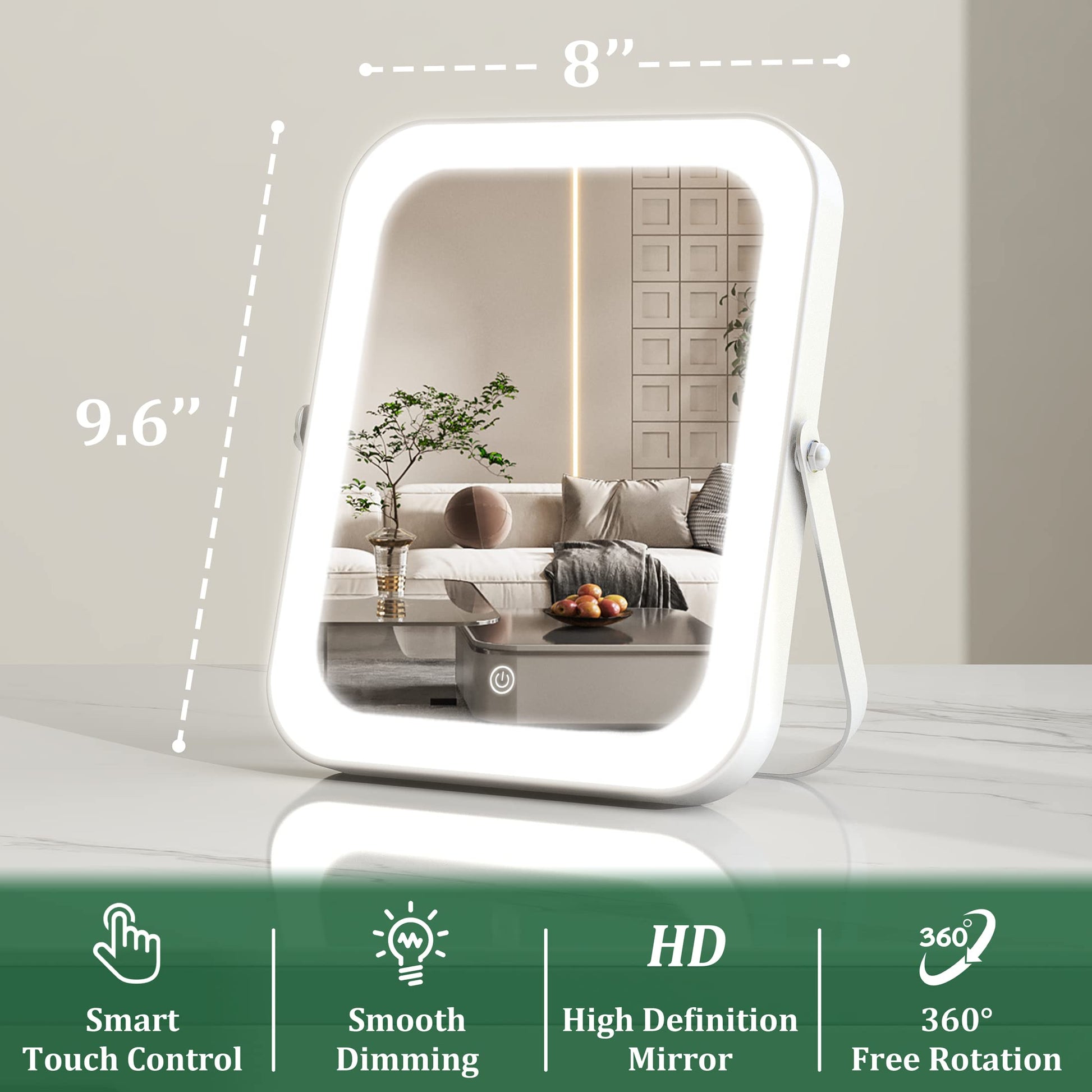 ROLOVE 8"x10" Lighted Vanity Mirror, Makeup Mirror with Light, Dimmable Touch Screen, Portable Travel Mirror with U-Shaped Bracket, Cosmetic Mirror with Lights for Makeup Desk & Dressing Room