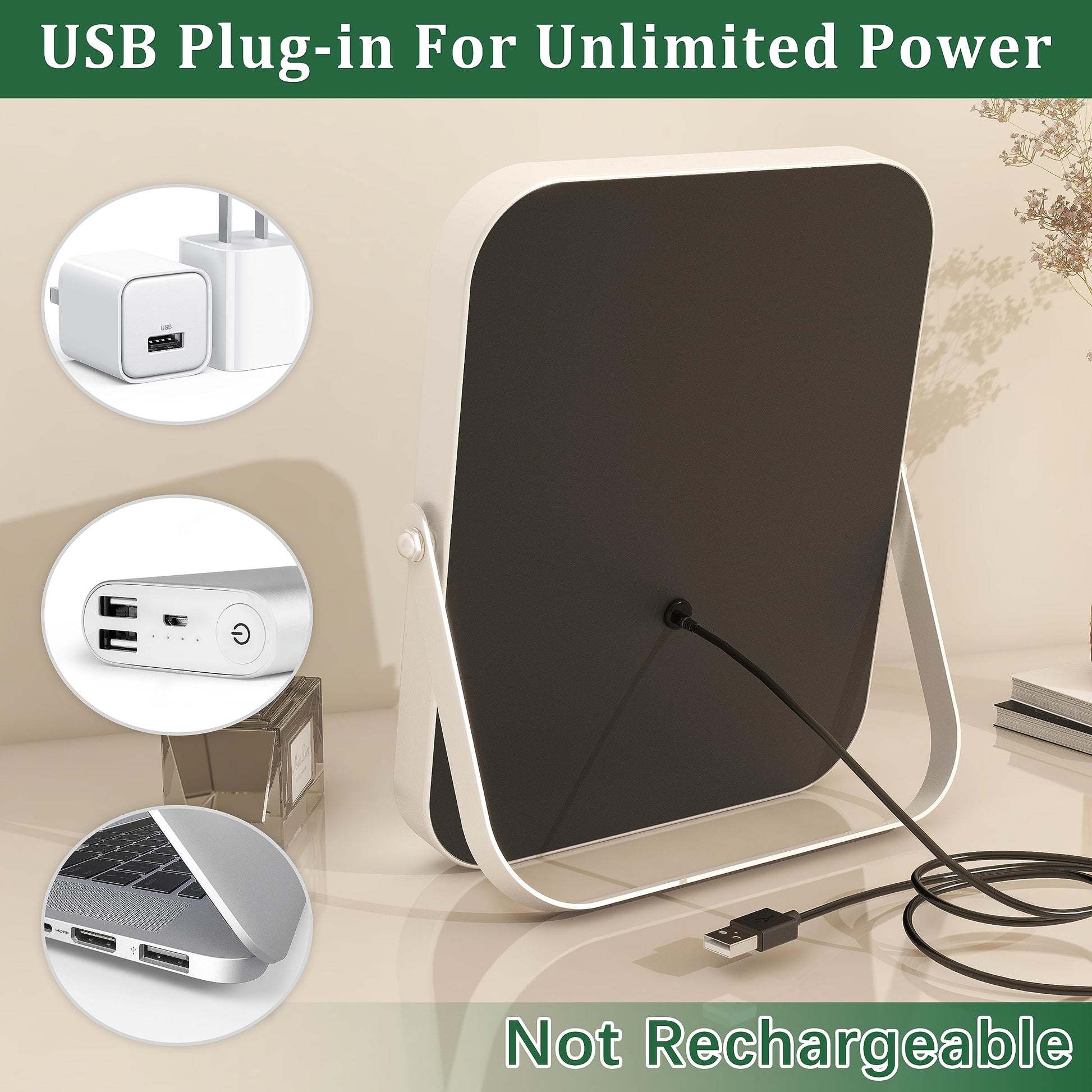- NOTE: It's NOT rechargeable! The mirror needs to be plugged into a USB socket in order to utilize the light function.