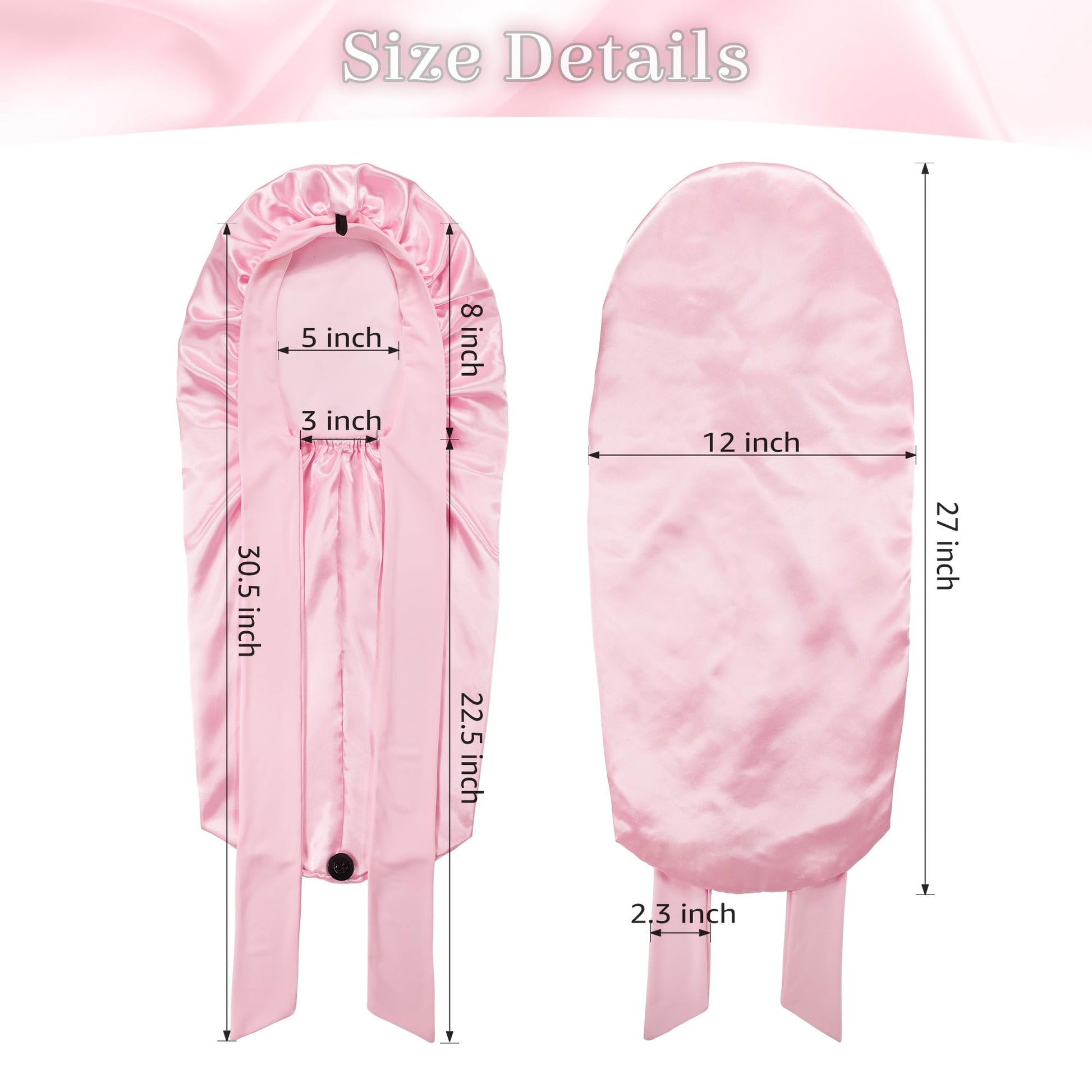 - Silk Bonnet with Tie Band: The long satin bonnet featured with stretchy long band, you can wrap it on head, adjust tightness and make a bow on forehead or both side. If you are man you can directly wrap on back. It can stay on over night, prevent hair from messy and protect your hair well, is one of most idea sleeping hair caps.