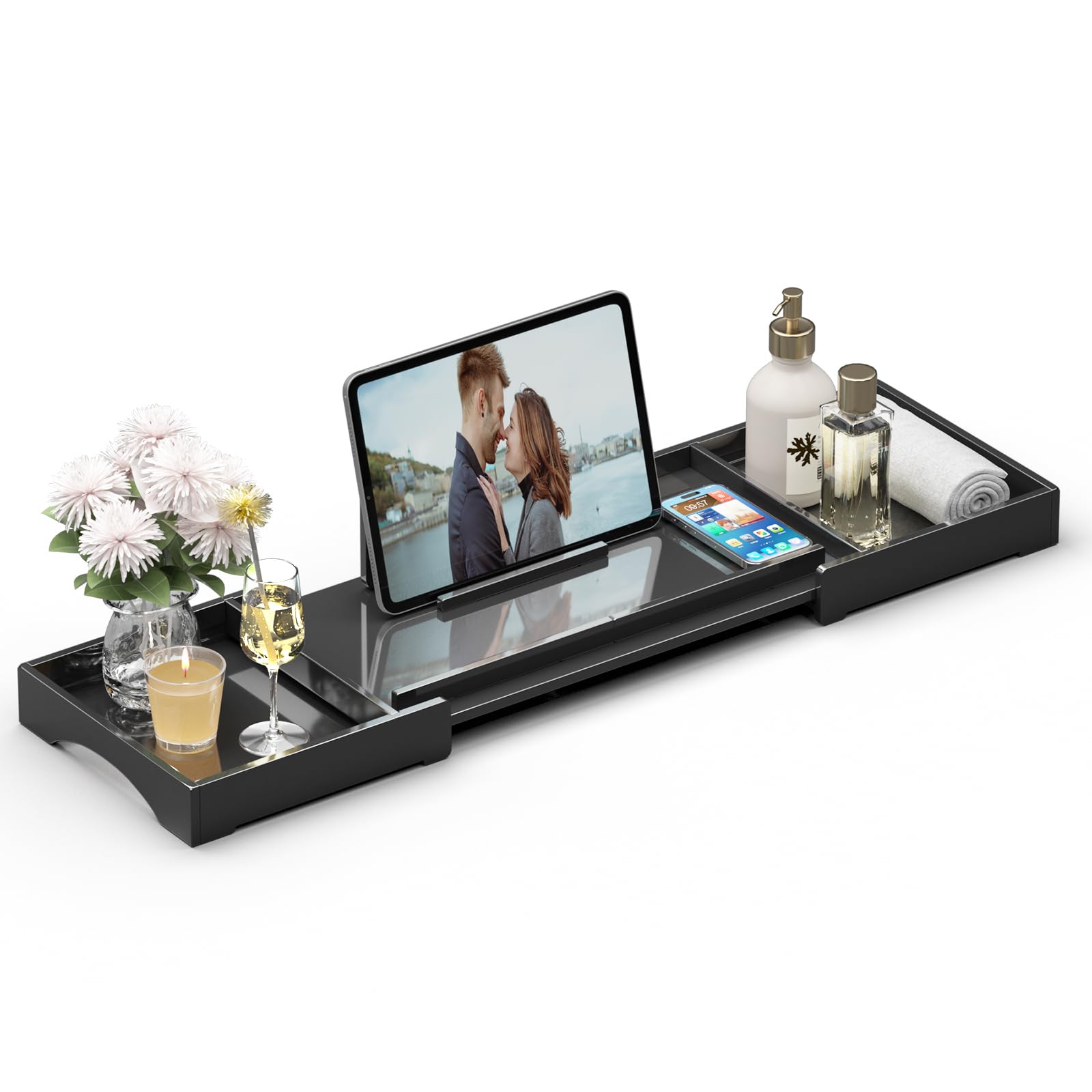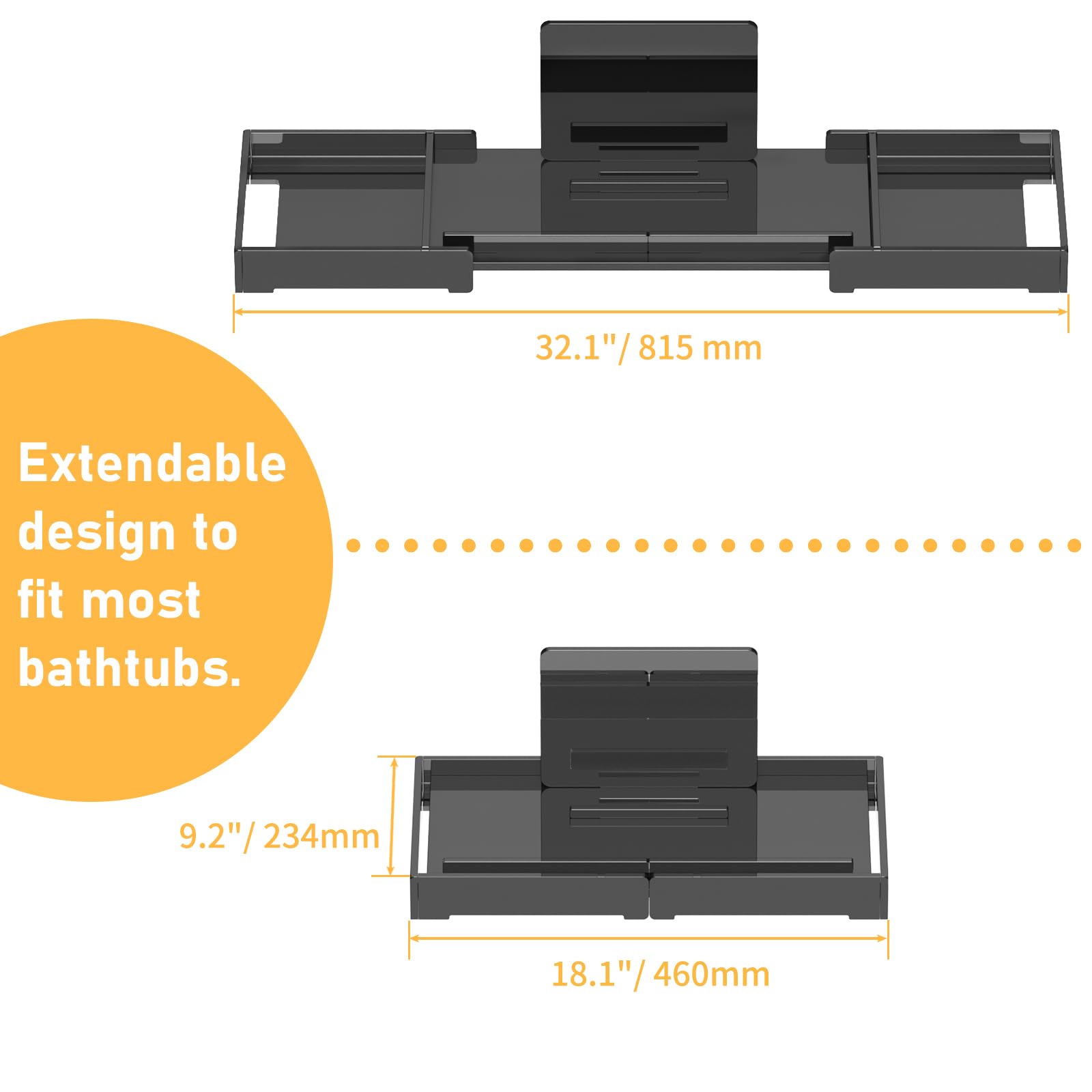 Rulyyo Bathtub Tray Caddy Table - Black 18-32.5 Inch Expandable Over The Tub Bath Tray, Waterproof Luxury Caddy for Bathtub