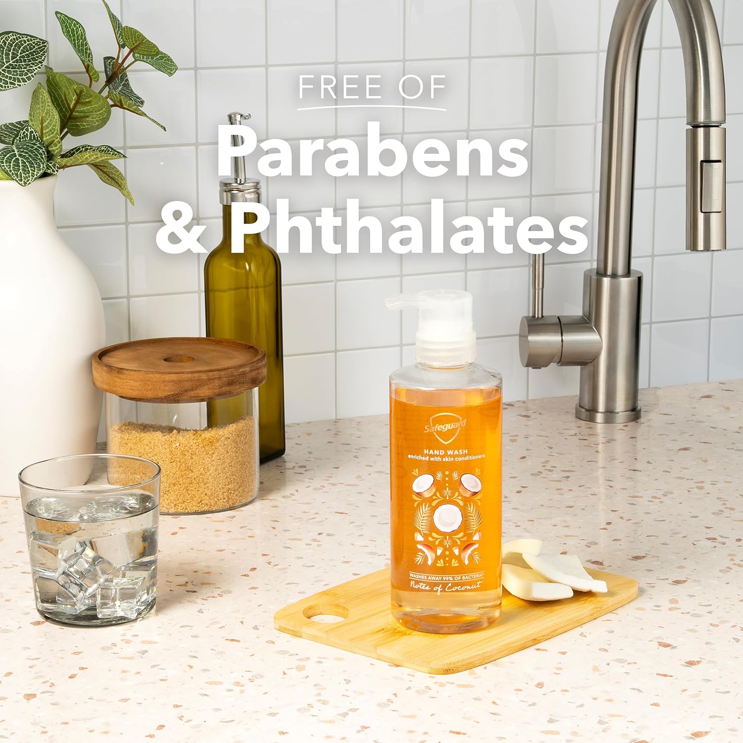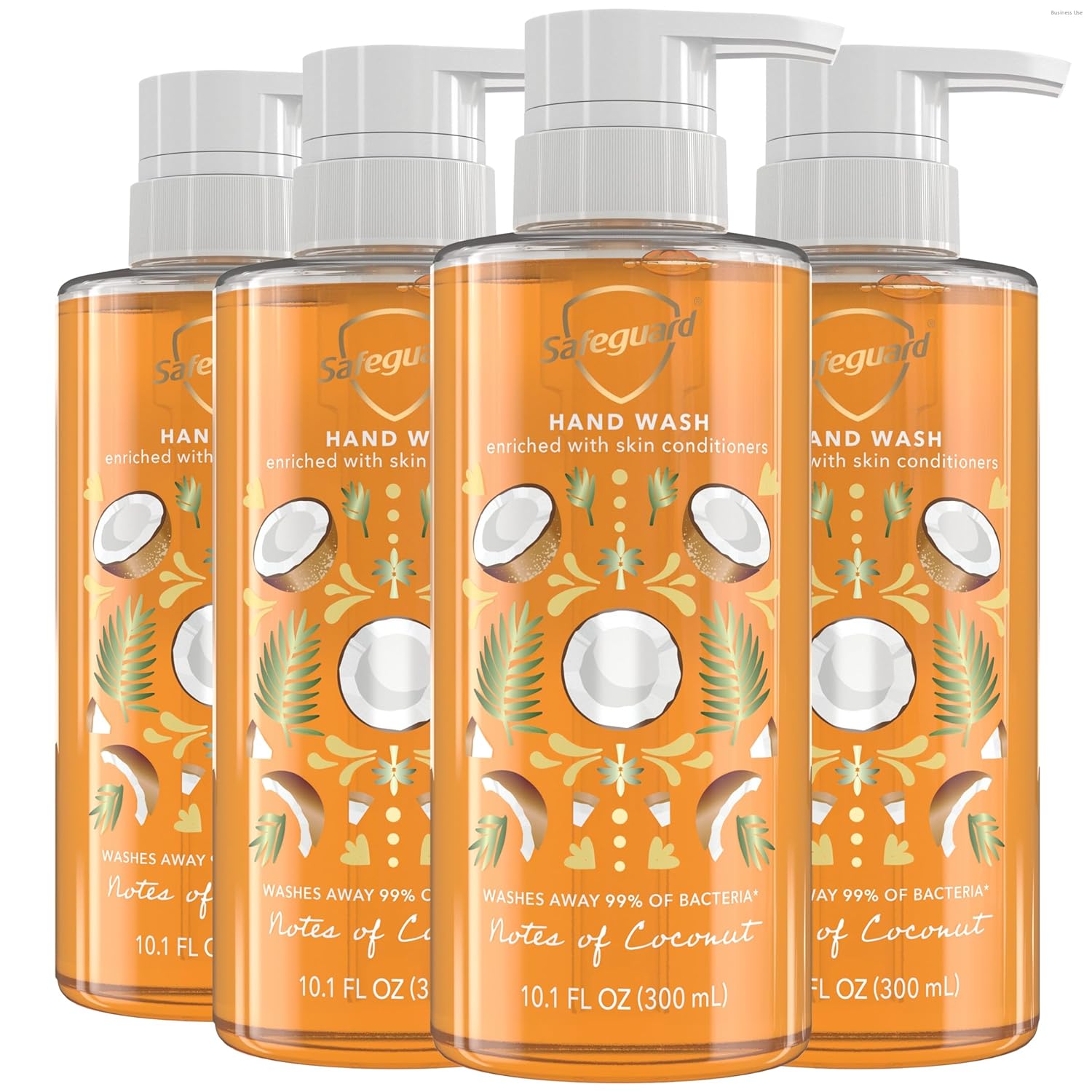 Safeguard's Notes of Coconut Hand Wash smells like coconutty goodness served besides a hammock on a tropical island paradise (Fragrance Notes: Coconut, Cream, Pineapple, and Spices). Safeguard hand wash is made with a Natural Moisturizing Factor that helps maintain skin's protective barrier. It doesn't just wash away 99% of bacteria* - it's enriched with skin conditioners, leaving skin soft & smooth! Show your hands some love every time you wash with Safeguard's Micellar Deep Cleansing formula. With over 60 years of experience, Safeguard wants help keep your loved ones healthy so you can keep enjoying life. Directions for Use: Turn the pump counterclockwise to unlock, wet hands, then dispense 5 mL of soap into your hands and scrub thoroughly for 30 seconds. * in lab testing vs. S. aureus & E. coli