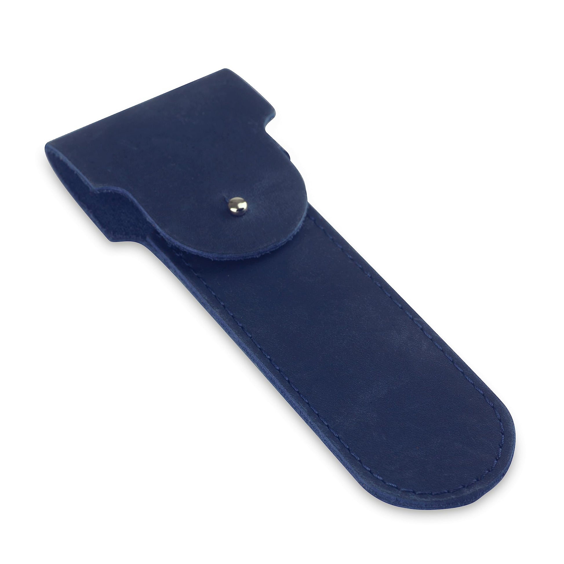 Safety Razor Head Protecting Leather Cover, Genuine Cowhide Leather Double Edge Safety Razor Case Accessories for Travel, Butterfly Razor Case (Blue)