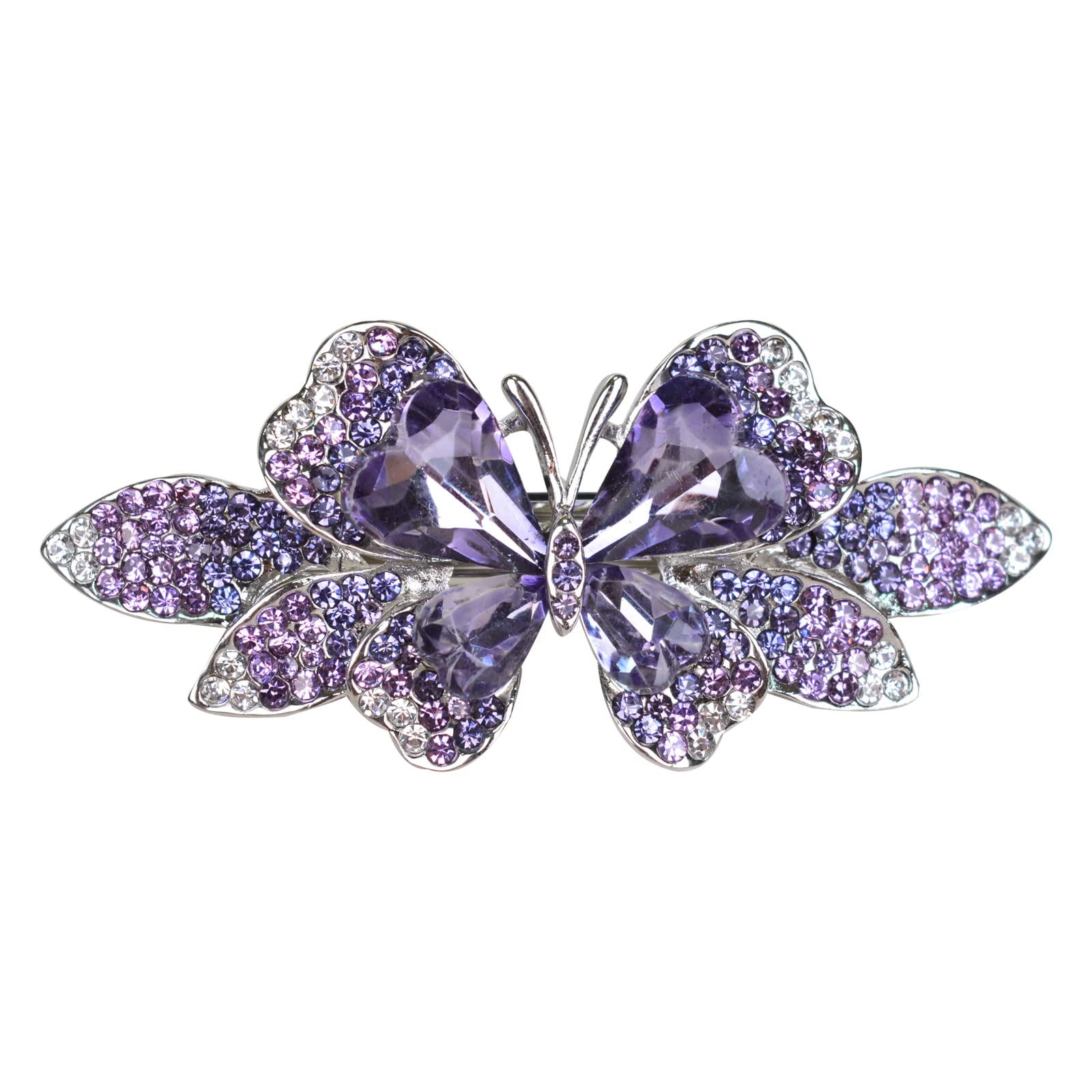Sankuwen Crystal Rhinestones Hair Barrette French Hair for Women Small Hairpin for Mom Butterfly Hair Clips (Purple)