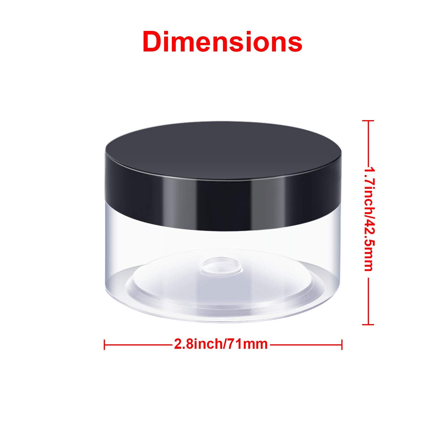 - Product size: each wide-mouth plastic containers jars measure 7.1 cm/ 2.8 inches in diameter, 4.25 cm/ 1.67 inches in height wide, the volume is 4 oz; These are empty jars, great for meal preparation, condiments, DIY crafts, creams, butters, lotions and others