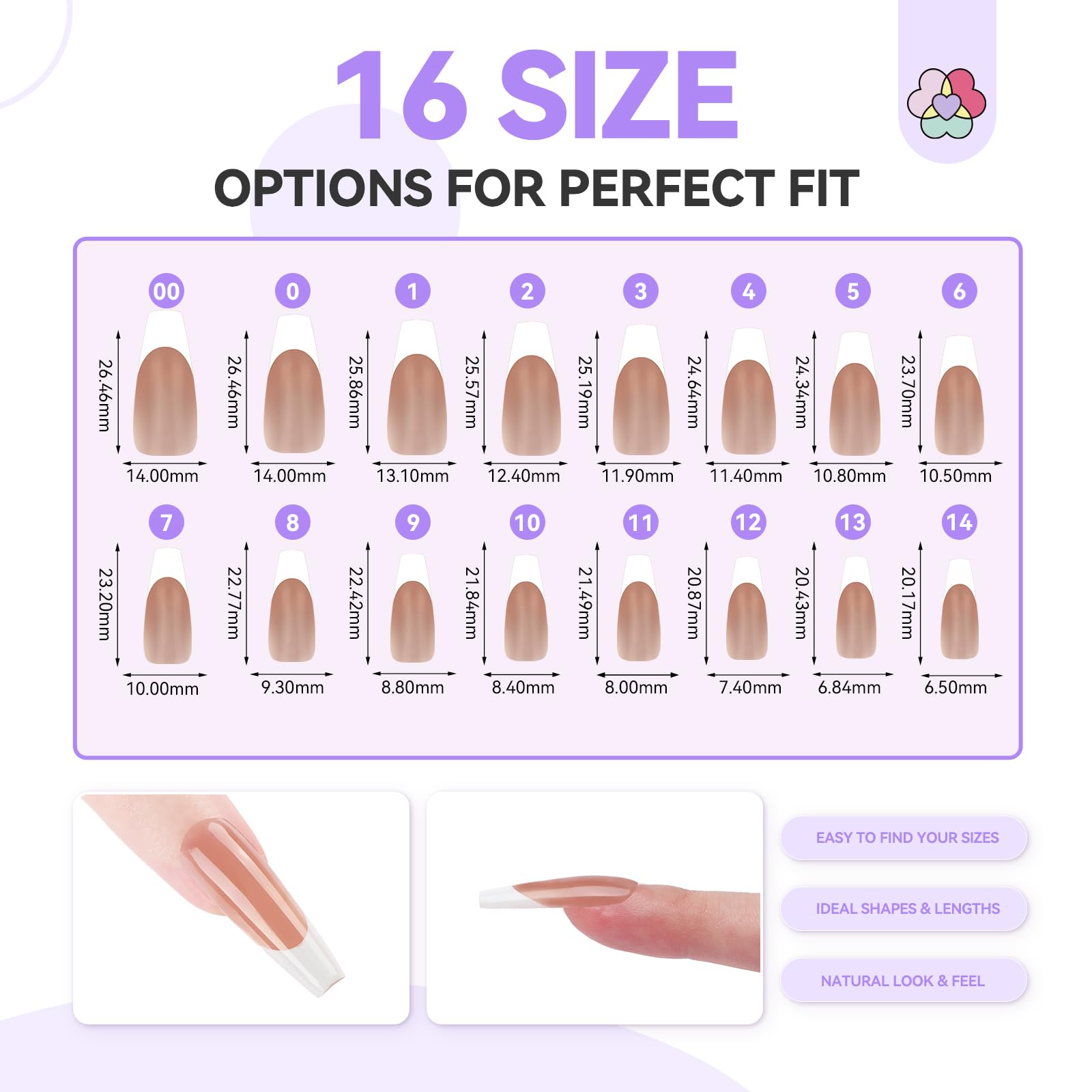 - Natural Fit, Lasting Comfort: Made from PMMA material, SSProTip X Long Coffin Press On Nails provide a perfect, comfortable fit. With 16 sizes available, they seamlessly adapt to various nail shapes, ensuring a natural look and a flawless manicure that lasts for weeks