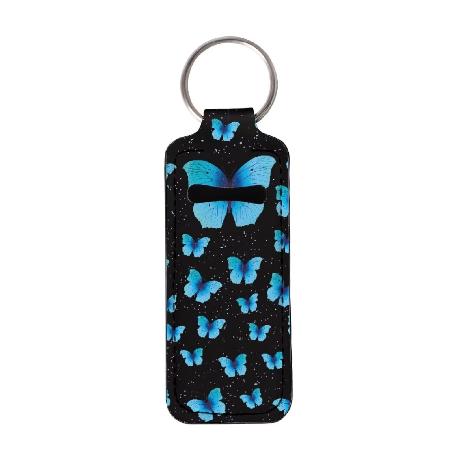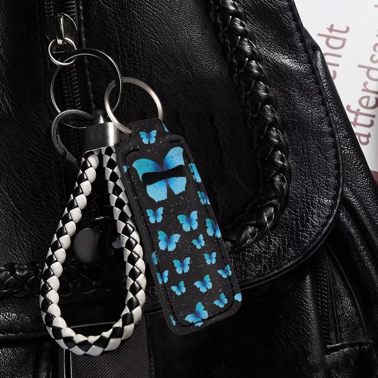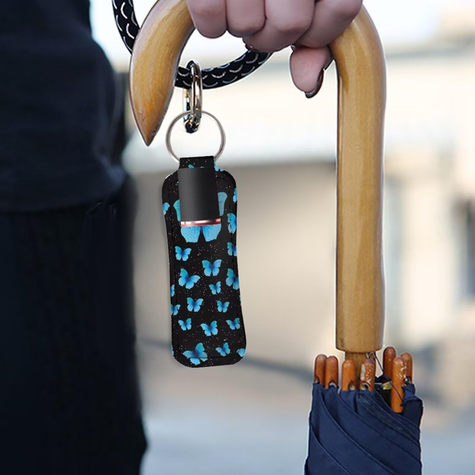 SEANATIVE Blue Butterfly Lipstick Keychain Holder for Women elegant Chapstick Sleeve Key Chain Durable Lip Gloss Holder Protective Case