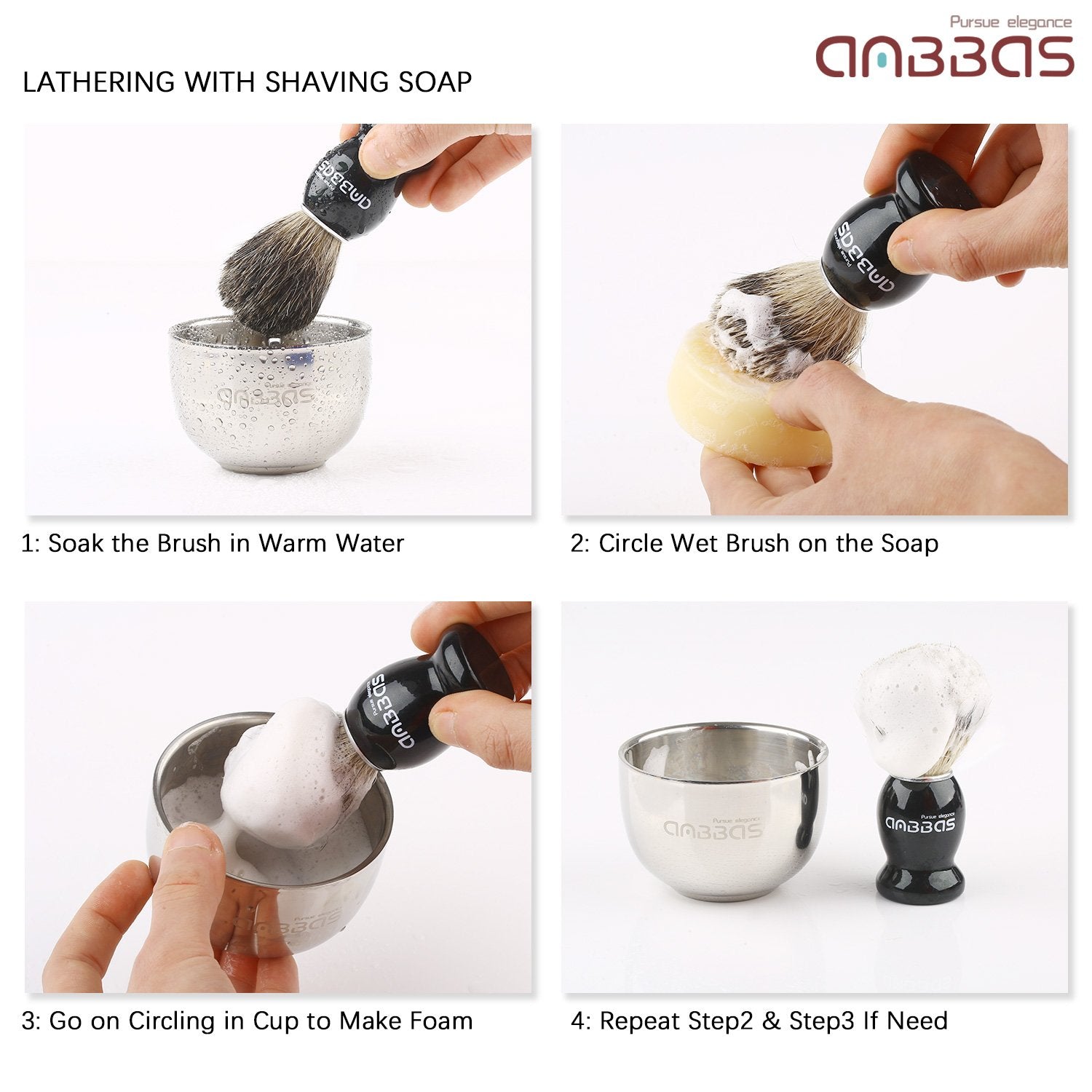 Shaving Set, 4in1 Anbbas Men Fine Badger Bristle Shave Brush Black Wood Handle,Stainless Steel Shaving Stand and Soap Cup with Shaving Soap Bar Natural Organic for Perfect Wet Shaving