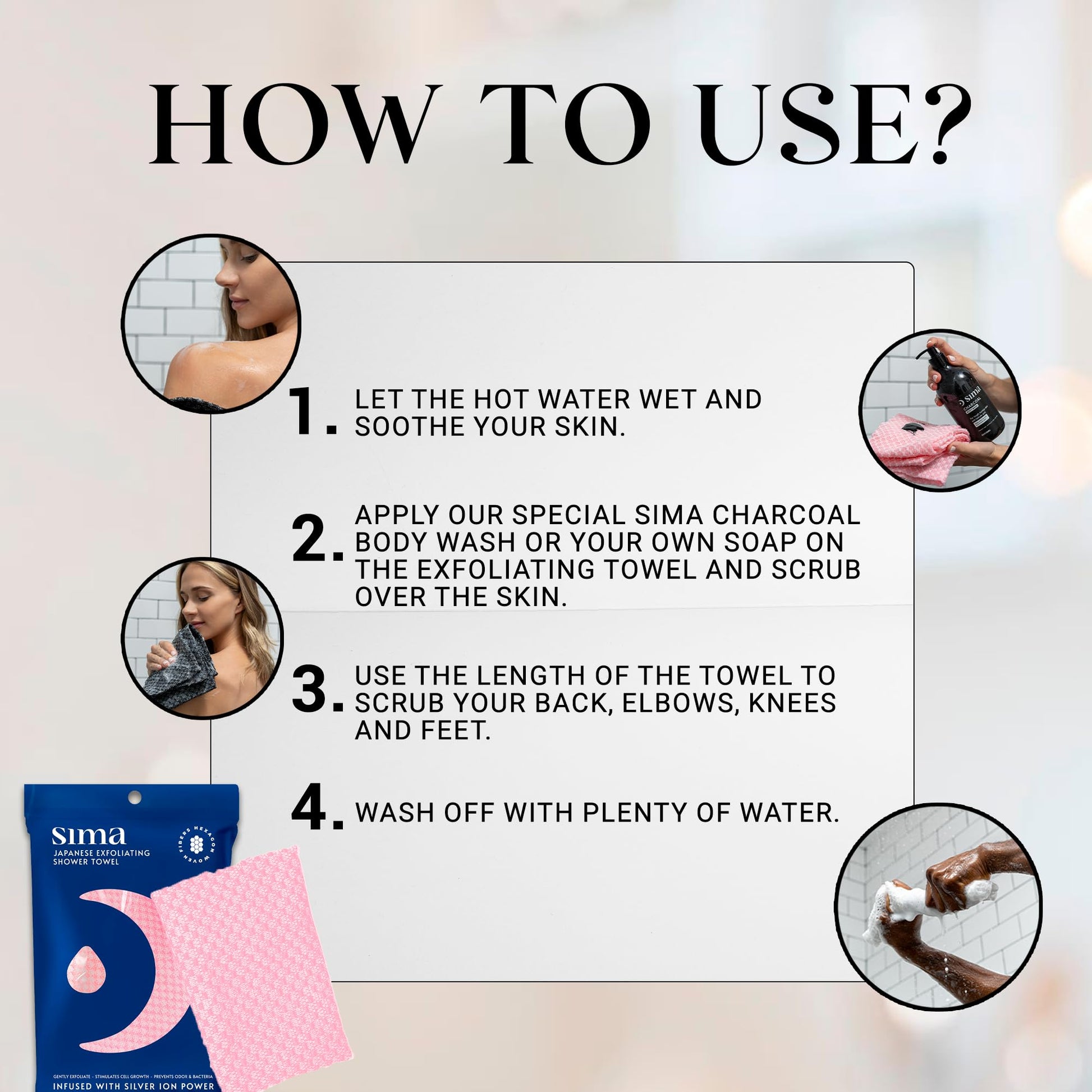 - Our Latest Self-Care Necessity: Elevate your regular shower or bath to a tranquil spa session with our face and body exfoliator scrubber towel!