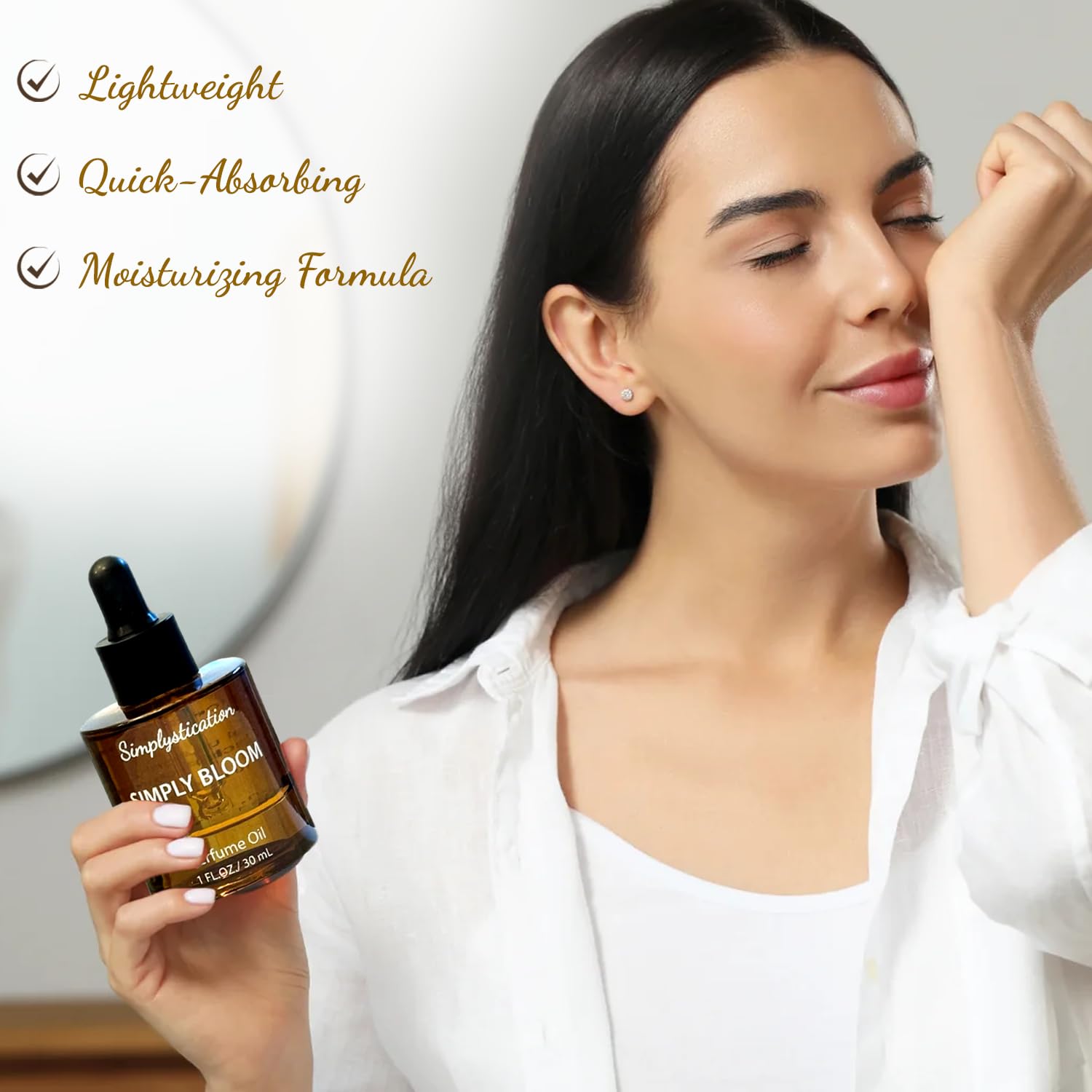 - PREMIUM INGREDIENTS FOR A LUXURIOUS EXPERIENCE: Crafted with premium Swiss-sourced jasmine oil perfume and high-quality MCT Oil, Simply Bloom is inspired by the timeless allure of Bloom. This luxurious fragrance oil perfume features top notes of orange and sambac, middle notes of tuberose, jasmine, and honeysuckle, and bottom notes of orris root, sandalwood, and vanilla.