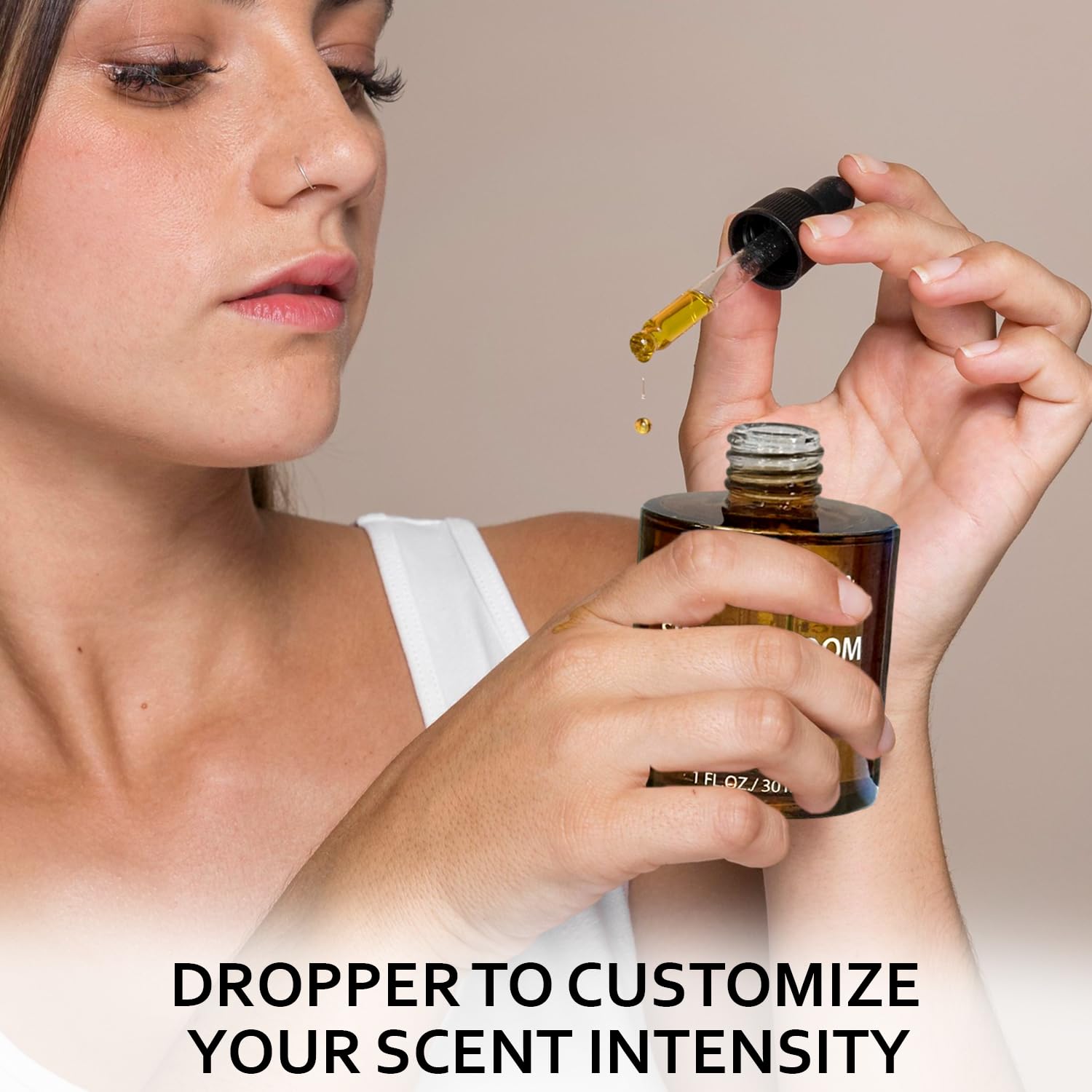 - ELEGANT DROP-PER BOTTLE FOR PRECISION: Encased in a sleek 30mL round clear dropper bottle, Simply Bloom long-lasting fragrance oil delivers a tailored experience with each drop. The precision dropper of body oil scent ensures you dispense just the right amount, adding sophistication to your vanity. Enjoy the complex layers of orange, sambac, orris root, and vanilla in every use.