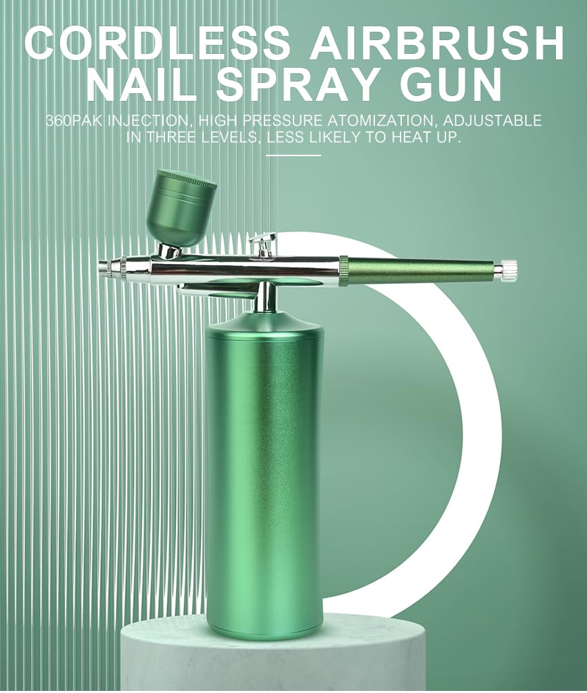 siyuwuro Airbrush Kit with Compressor Rechargeable Cordless 0.3mm Nozzle Airbrush Portable Adjustable Handheld Airbrush Set for Nail Art, Makeup, Painting, Cake Decorating, Green
