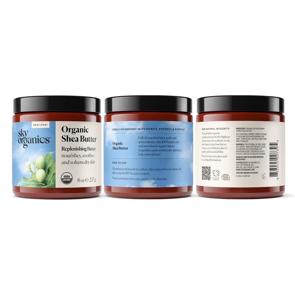 Sky Organics Organic Shea Butter, Replenishing Butter for Body & Face, Soothes, Softens and Boosts Skin's Overall Moisture and Radiance, Suitable for Dry Skin, USDA Certified Organic Skin Care, 8 Oz