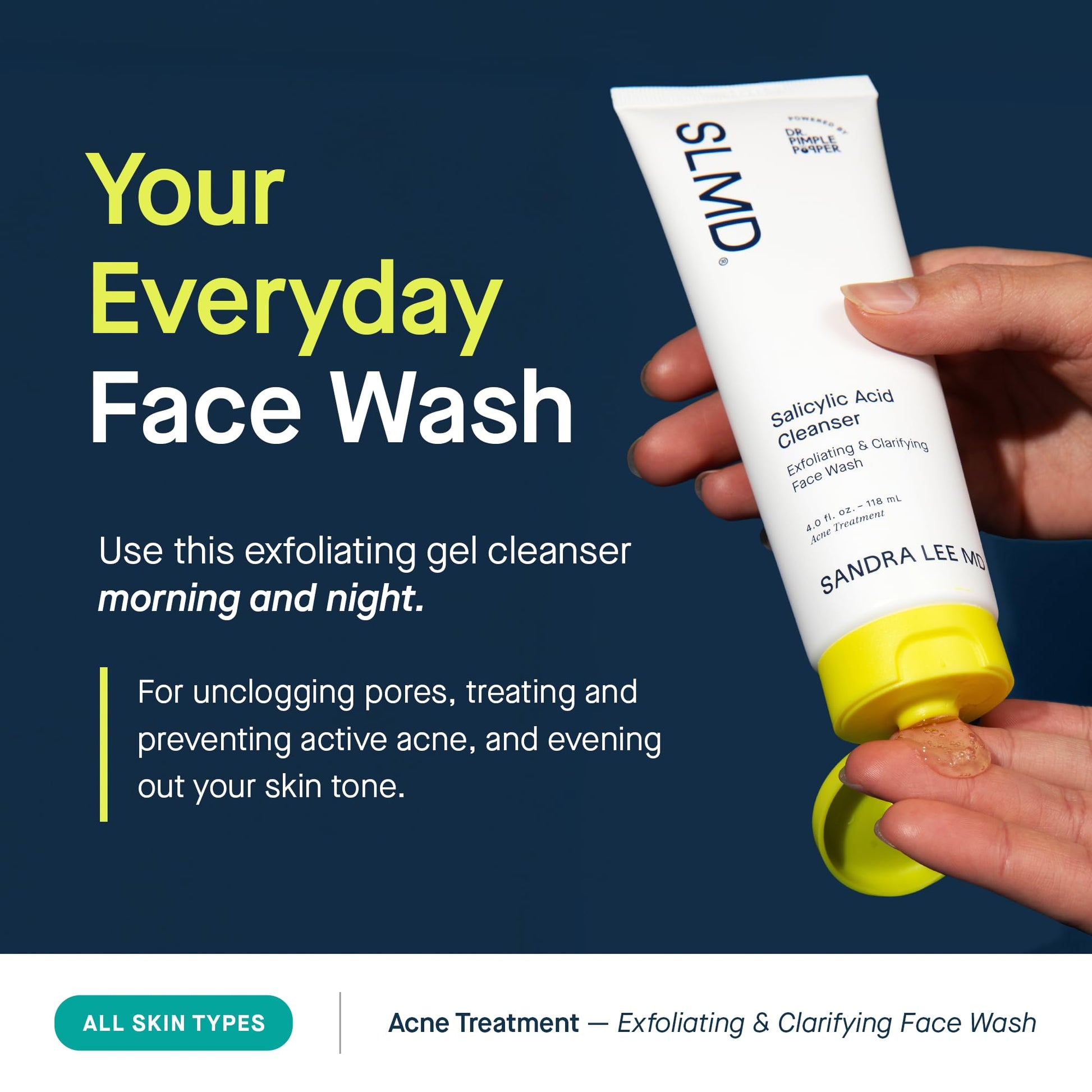 SLMD by Dr. Pimple Popper - Salicylic Acid Cleanser 4 fl oz Exfoliating Gel Cleanser Face Wash Acne Prone Skin - Treat & Prevent Active Acne - Pore Cleanser Prevents Blackheads & Whiteheads
