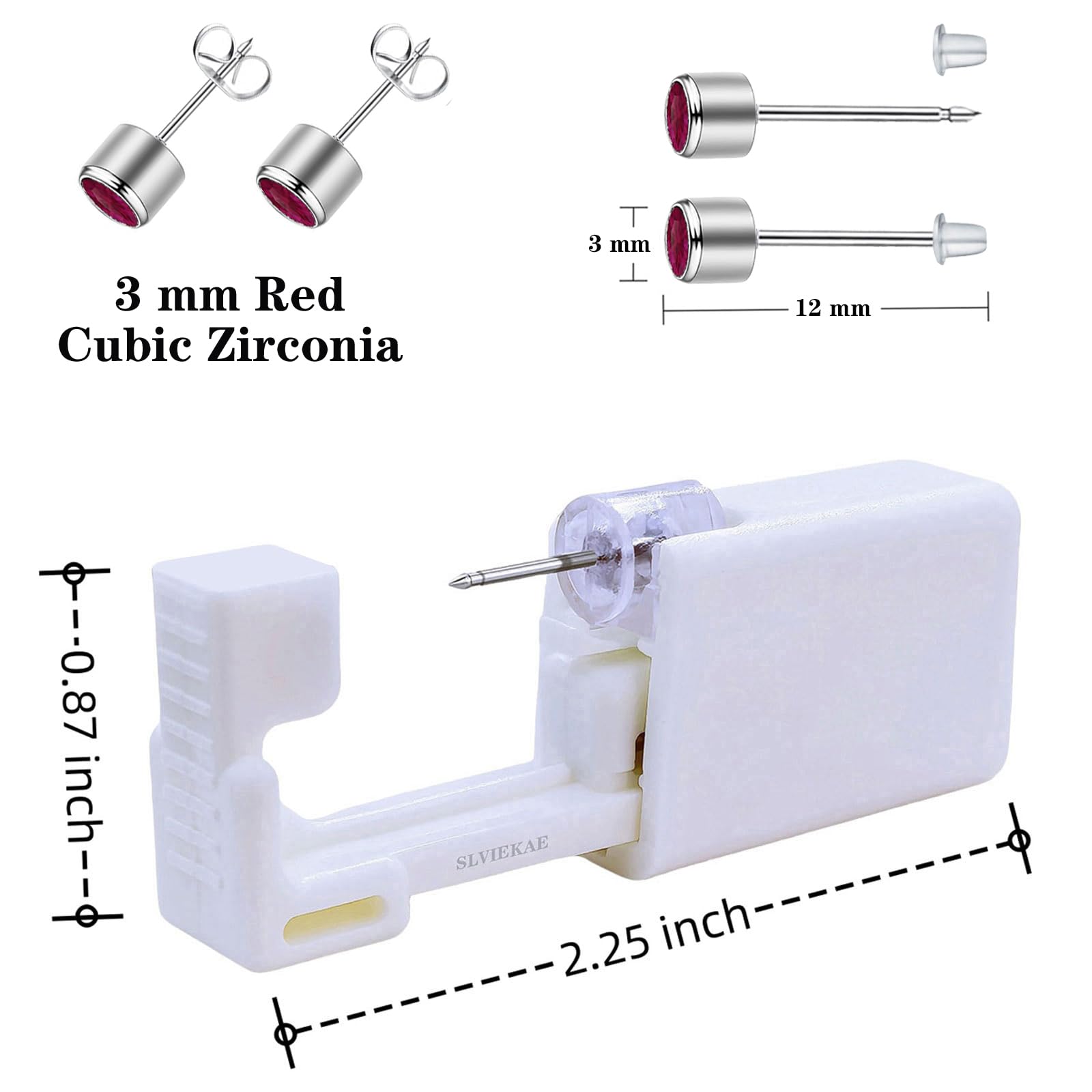 - SLVIEKAE Ear Piercing Gun Kit - Advanced design, simple operation, as simple as a stapler, Hold both ends of the piercing gun, align the tip of the stud with the mark on the ear, then press quickly. Release your hand after hearing a "click" sound, and the needle tip will enter the ear, and the ear piercing is completed.