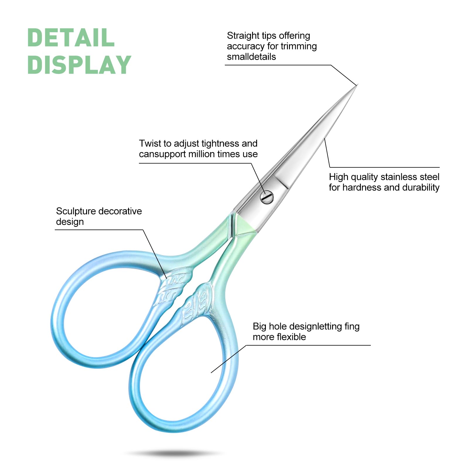 - 【Pointed Detail Scissors】:Extra sharp pointed tips straight edge blades. Be careful to avoid cutting the skin when using。