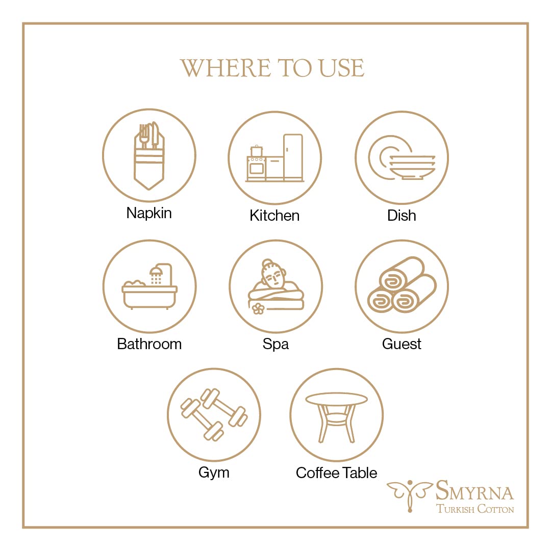 - MULTI-PURPOSE: Smyrna Turkish Cotton dish towels are decorative and useful in various places like kitchen and bathroom. Use it as tea, gym, guest towel, face, hair, dishcloth, and wash cloth. You will never believe how functional this dish cloth is