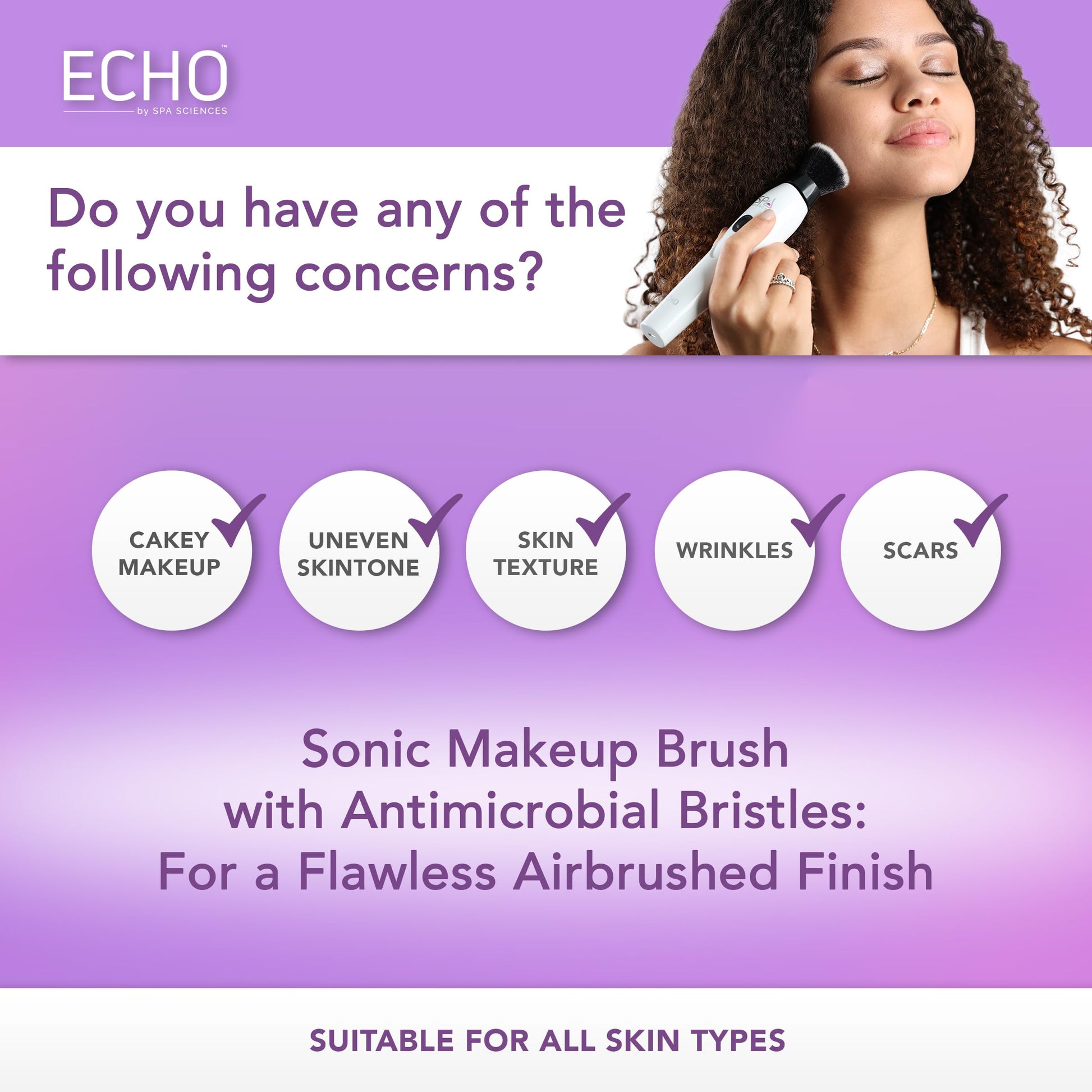 - EASY APPLICATION - This professional cosmetic tool operates at over 24,000 micromovements per minute, turning your makeup into tiny micro-sized particles that blend quickly for smart and easy application on your face. The ECHO is great for all skin types and uses less time and less makeup than fingers, sponges or manual brushes.