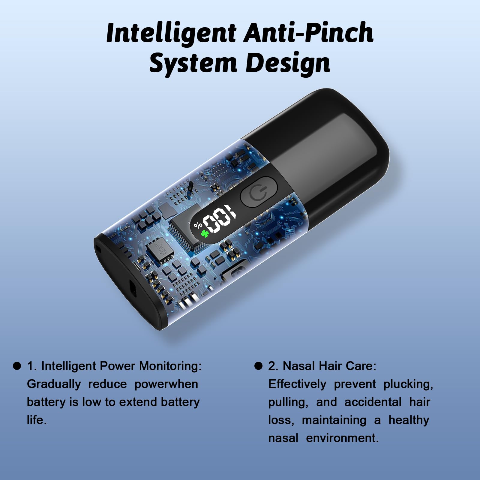 - 【Safe and Quick Cutting】This ear and nose hair trimmer for men is equipped with a 360° rotating double-edged cyclonic blade system and 12000rpm high-speed motor, which can quickly and safely trim nose hair, providing a comfortable and trimming experience. The intelligent anti-pinch system ensures that it automatically stops when encountering resistance to avoid skin injury, allowing you to use it with more confidence