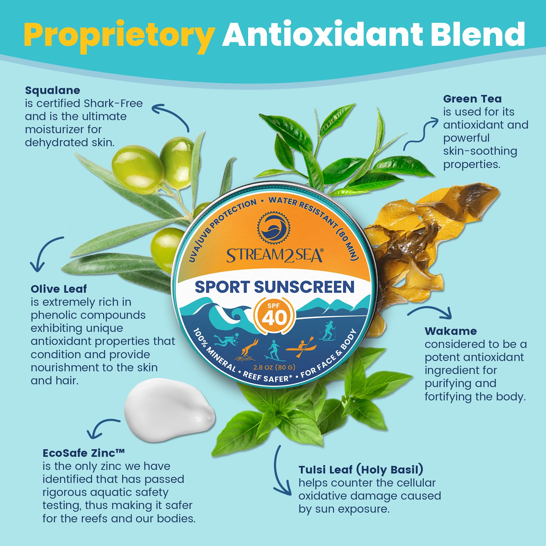 STREAM2SEA Sunscreen Balm in Tin, SPF40 Reef Safe Mineral Sunscreen, Face & Body Biodegradable Sunscreen, Natural Organic Unscented Travel Size Reef Safe Sunscreen with Zinc Oxide, 2.8 oz
