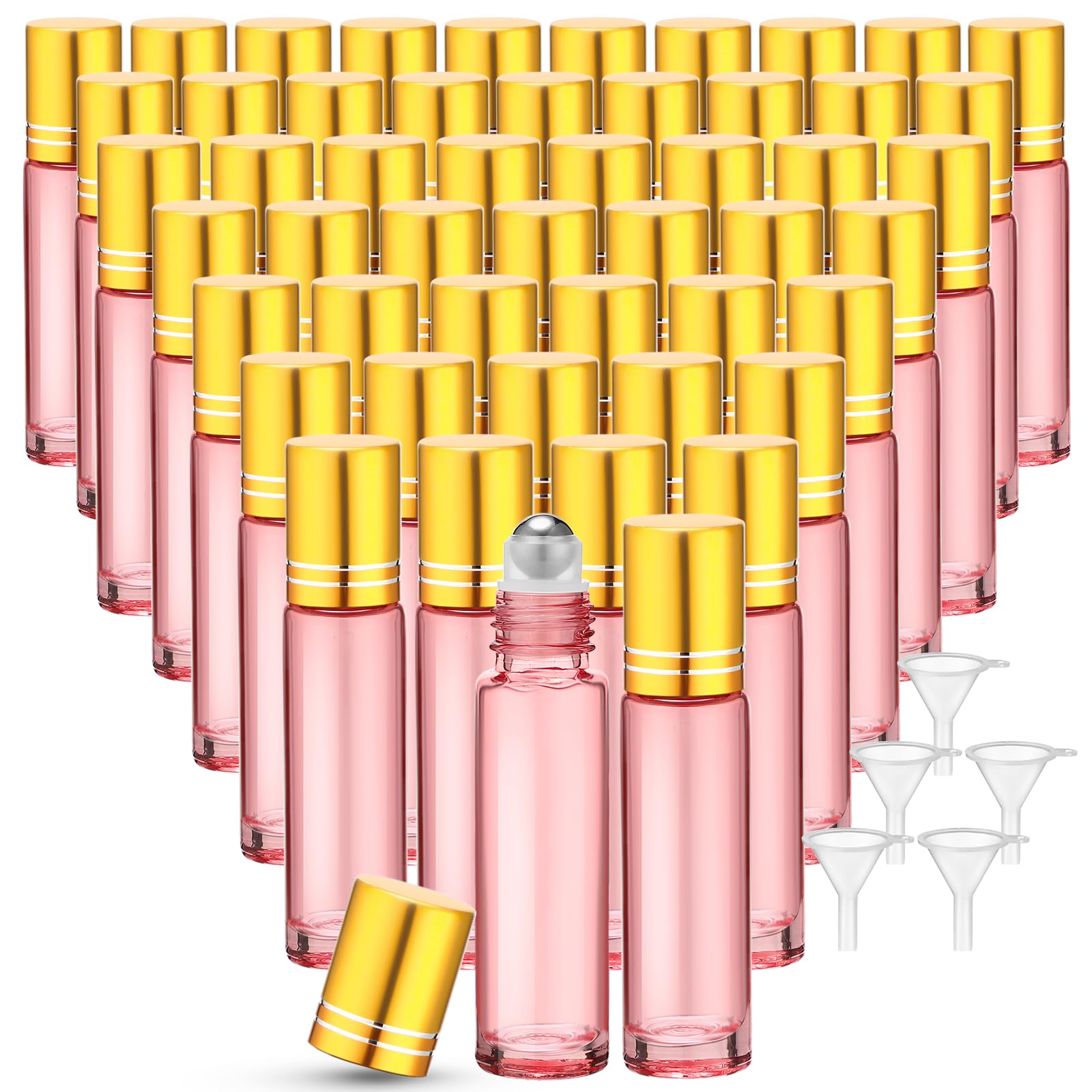 Sumind 150 Pcs Essential Oil Roller Bottles 10 ml Glass Empty Roll on Bottles with Stainless Steel Balls Leak Proof with 5 Funnel for Travel Essential Oil(Pink)