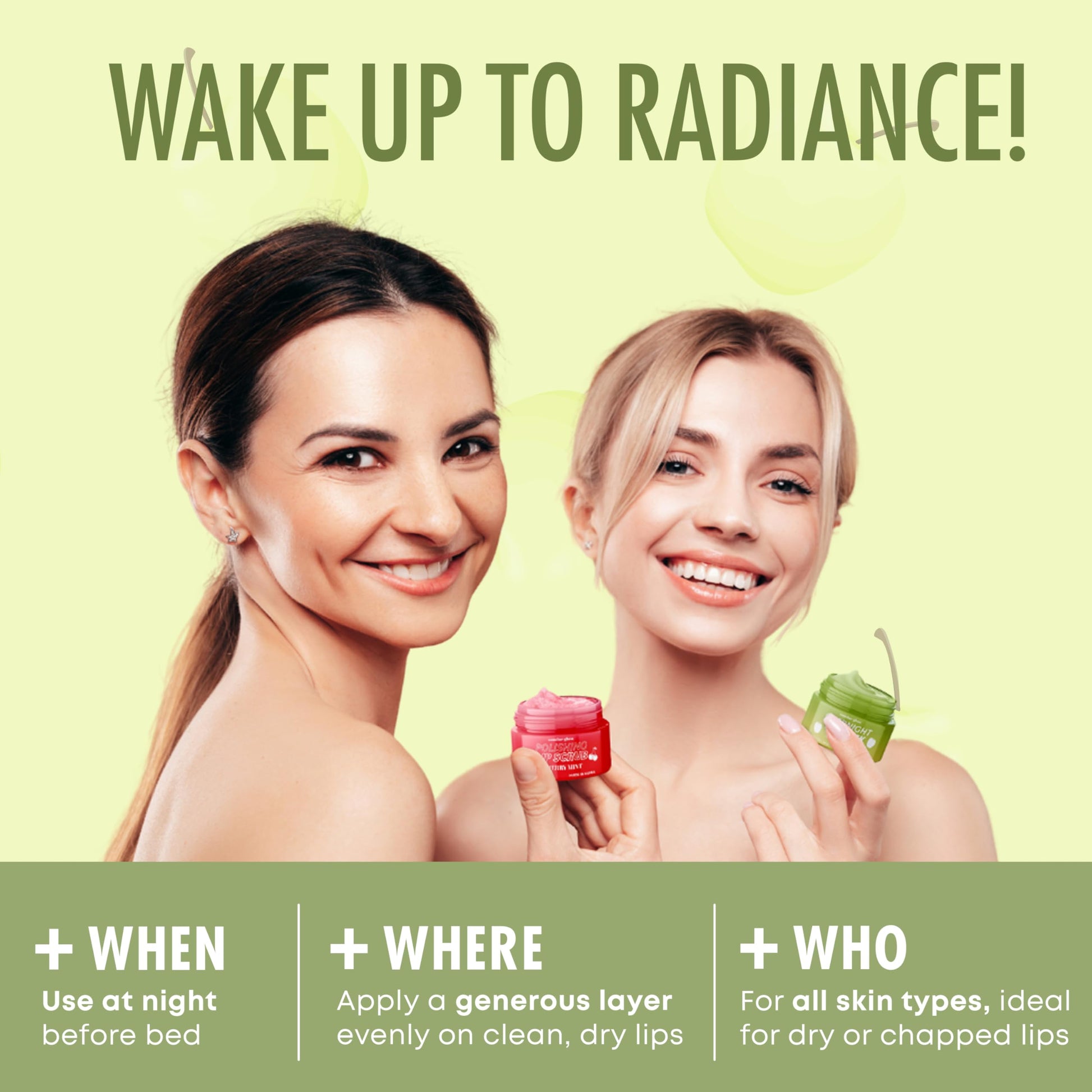 Sundae Glow Apple, Pear, Cherry & Mint Lip Mask and Scrub - Dermatologist Tested, Hydrating & Exfoliating, Korean Skin Care, Nourishes, Softens & Brightens Lips - Vegan & Natural - 1 Pack
