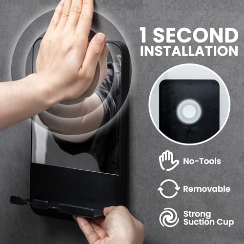 - INSTANT INSTALLATION: Achieve a tool-free setup in just one second. No screws, nails, or adhesives are needed. Simply press the suction cup to squeeze out the air, and it will stick securely to the surface. Crafted from premium materials, the suction cup of our shower mirror ensures a firm hold that lasts for years