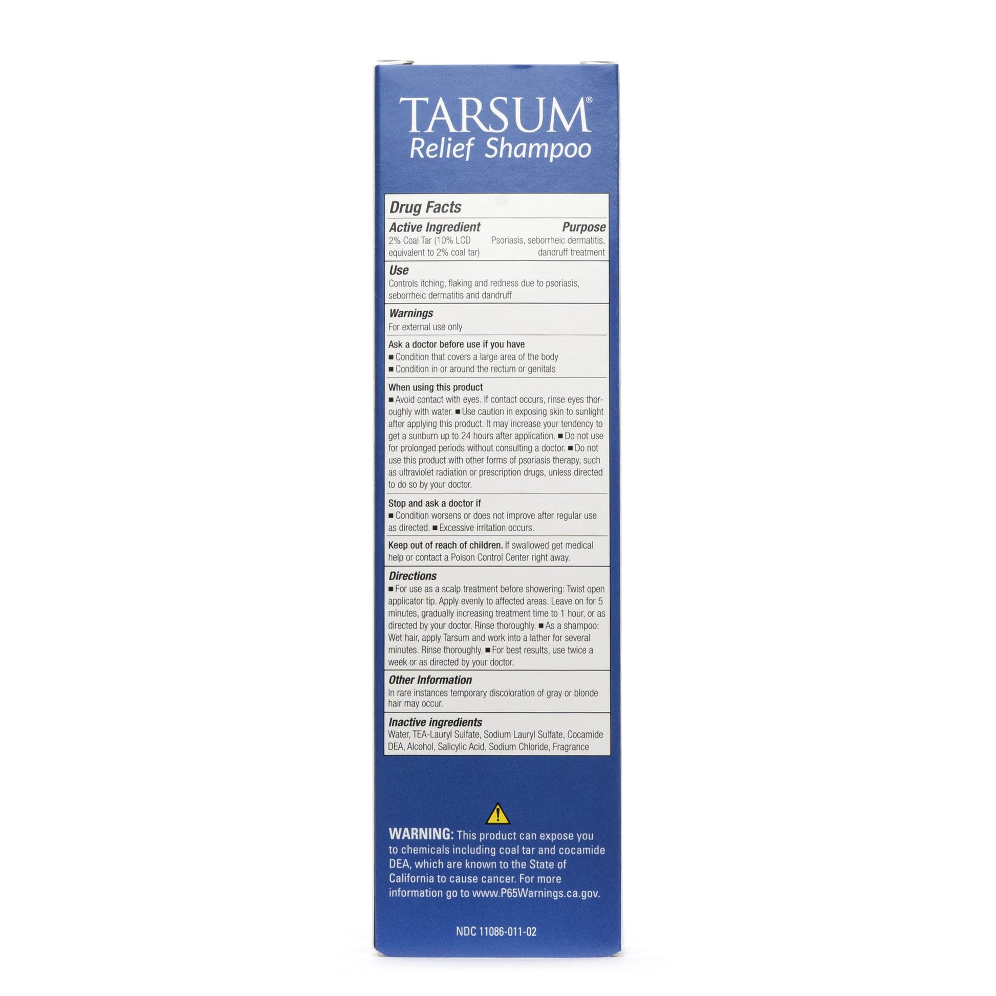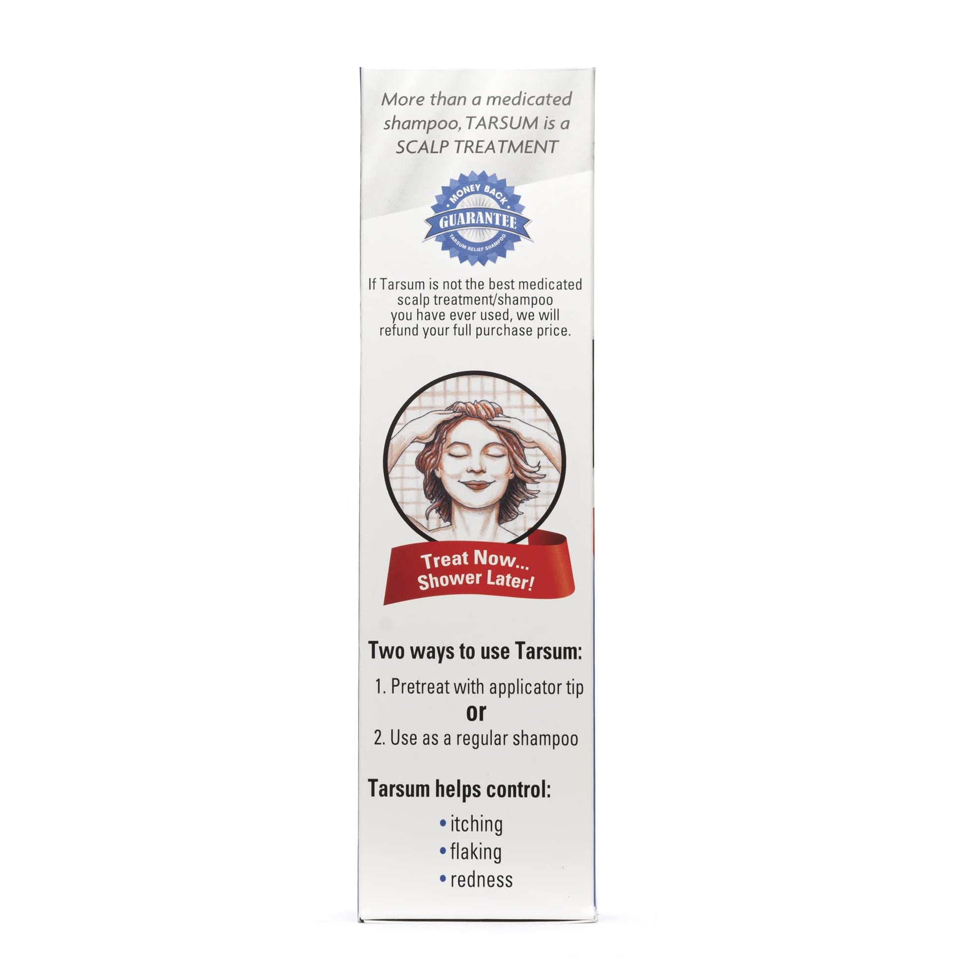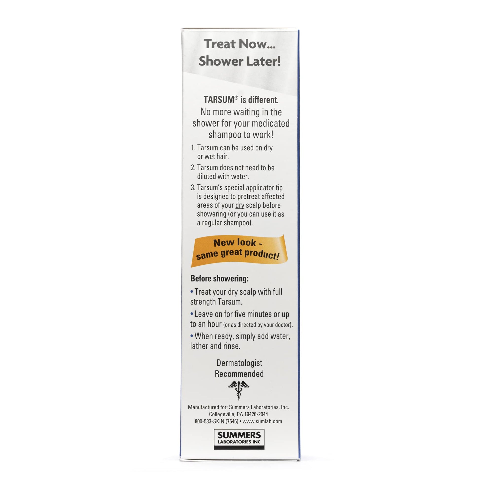 - RELIEF FOR YOUR LIFE: When you apply Tarsum before your shower you can leave it on dry for anywhere between 5 minutes and 1 hour to get the level of action that's right for you. Tarsum is a shampoo and conditioner that works more the longer you leave it on.