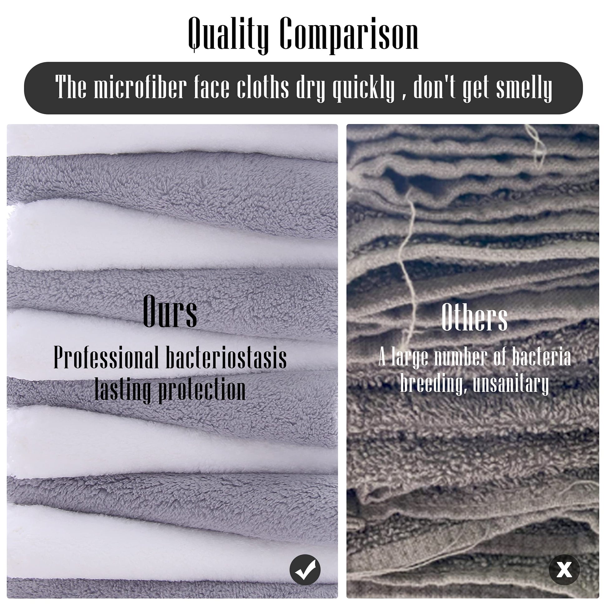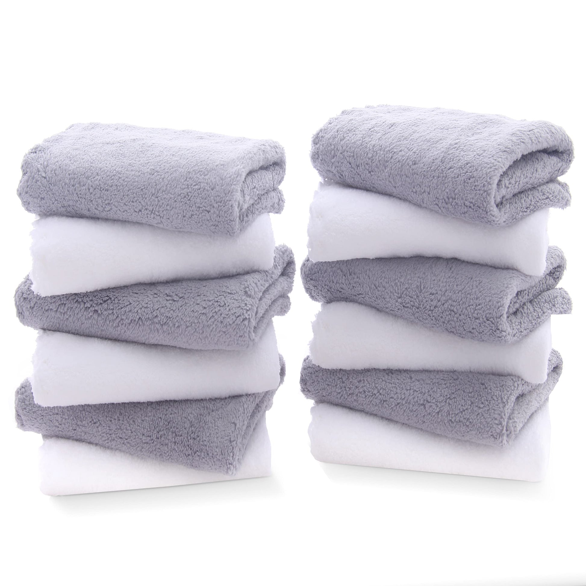 TENSTARS 12 Pack Premium Washcloths Set - Quick Drying- Soft Microfiber Coral Velvet Highly Absorbent Wash Clothes - Multipurpose Use as Bath, Spa, Facial, Fingertip Towel (Grey and White)