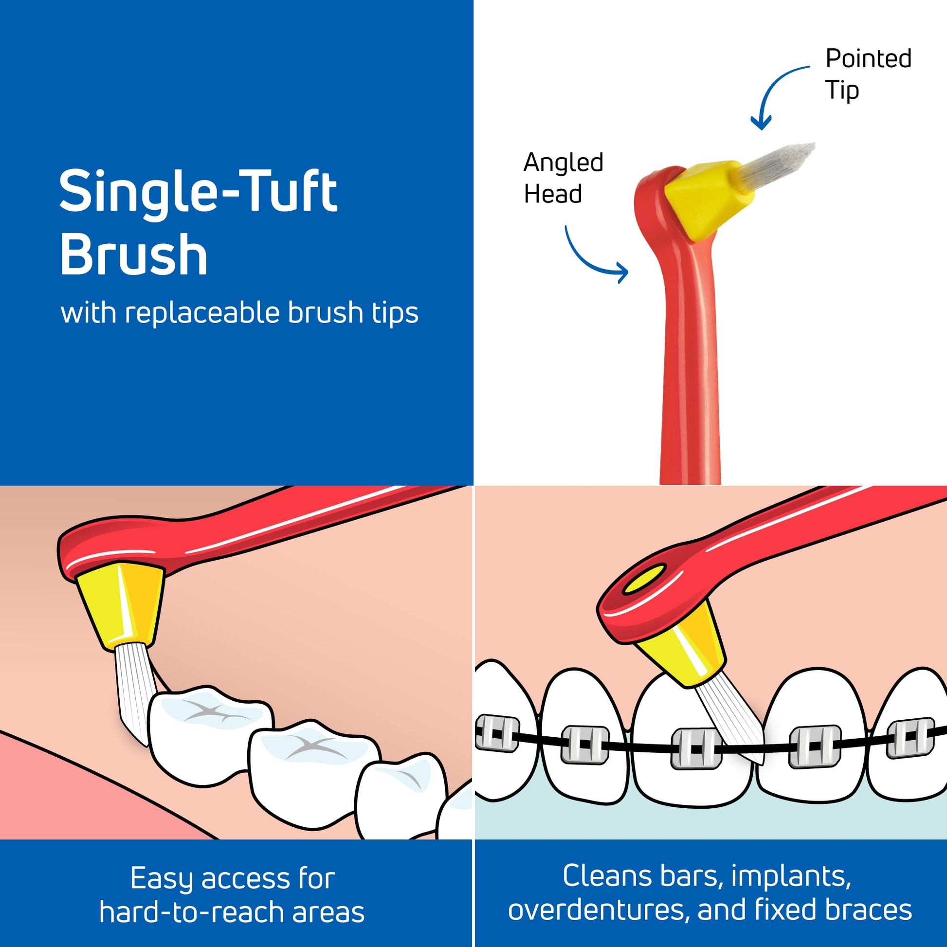 The Interspace and Implant Orthodontic Soft Toothbrush clean implants and braces.