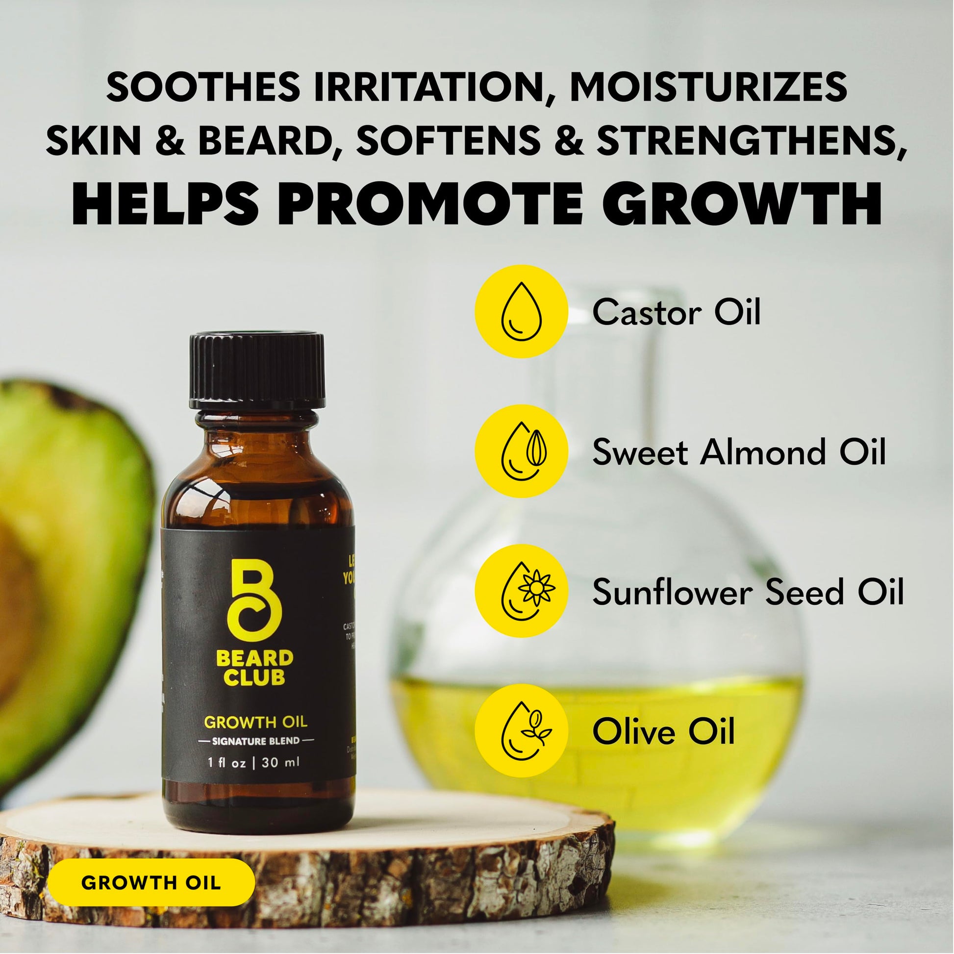 - Beard Growth Oil - A blend of natural oils, Castor, Cedar and Avocado helps to strengthen roots, soothe itch while softening skin and helping to support healthy hair growth