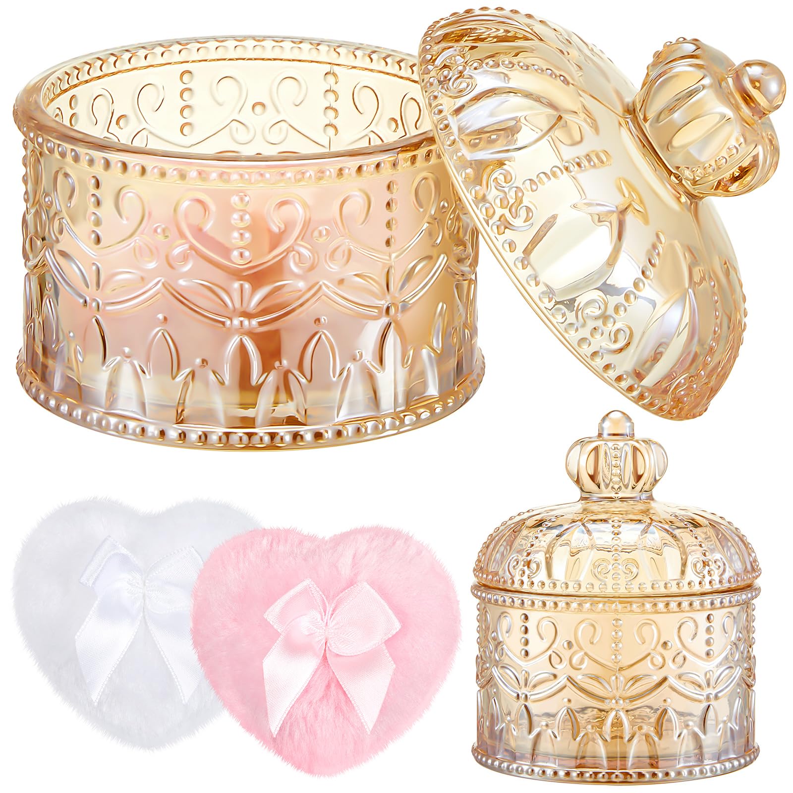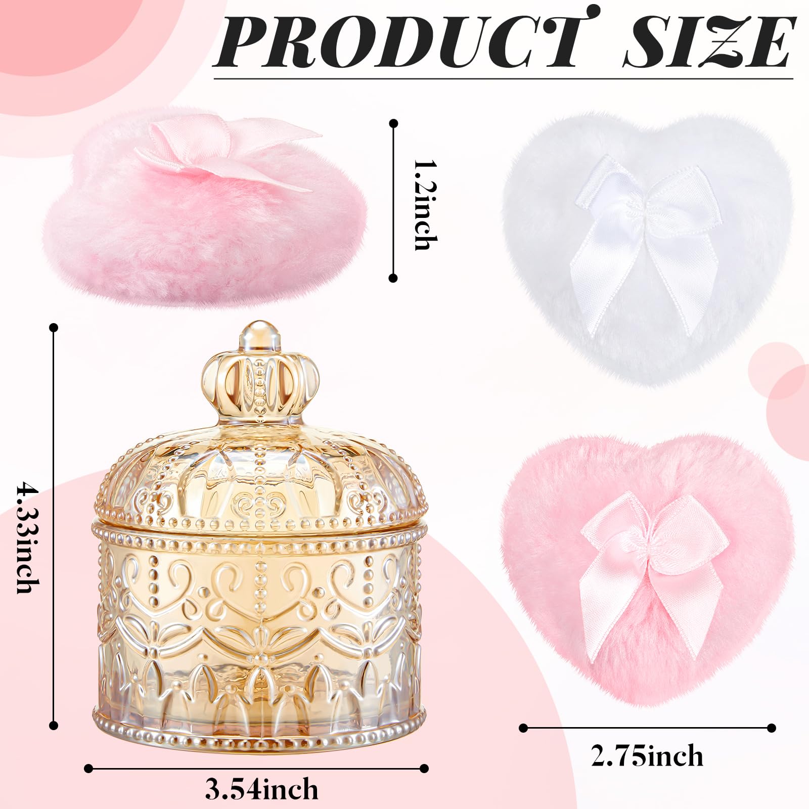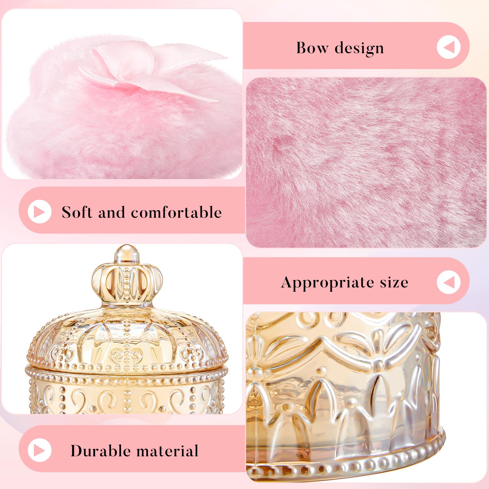 - Elegant Design: our delightful kit includes 1 powder puff container and 2 powder puffs; With the plush fabric of the puff and the glass design of the container, we aim to showcase elegance and class while providing the softest touch on your skin; Please note, this product is not a sealed container