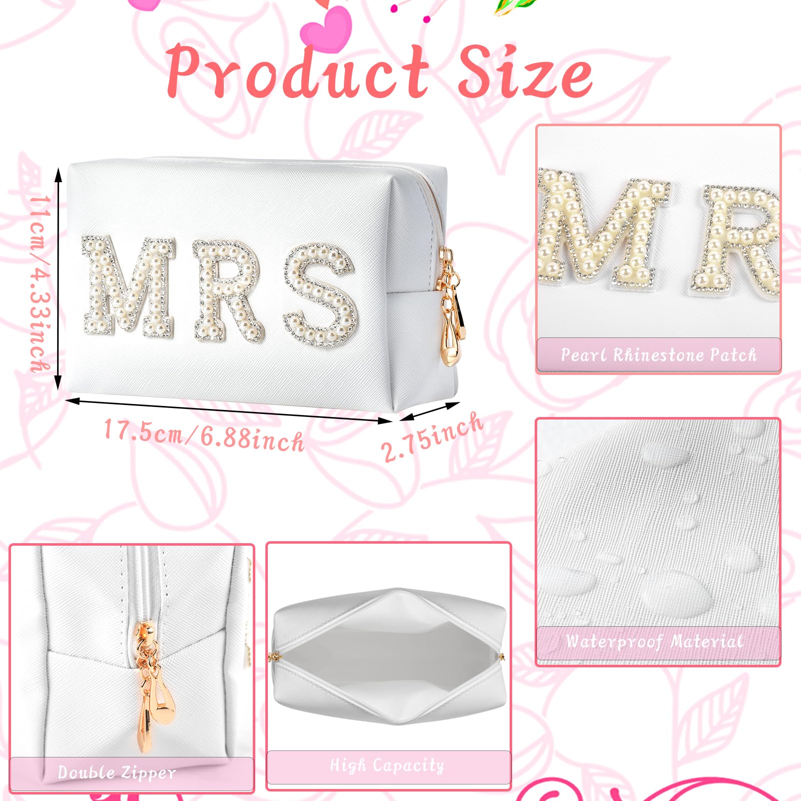 - Bride Cosmetic Bag: The letter patch makeup bag is made of water-resistant PU Leather and designed with shinny pearl and rhinestone “MRS” letters. Bride makeup pouch measures about 6.89 x 2.95 x 4.33 inches/ 17.5 x 7.5 x 11 cm, which can store phone, lipstick, makeup brushes, eyeshadow and so on, perfect for travel.