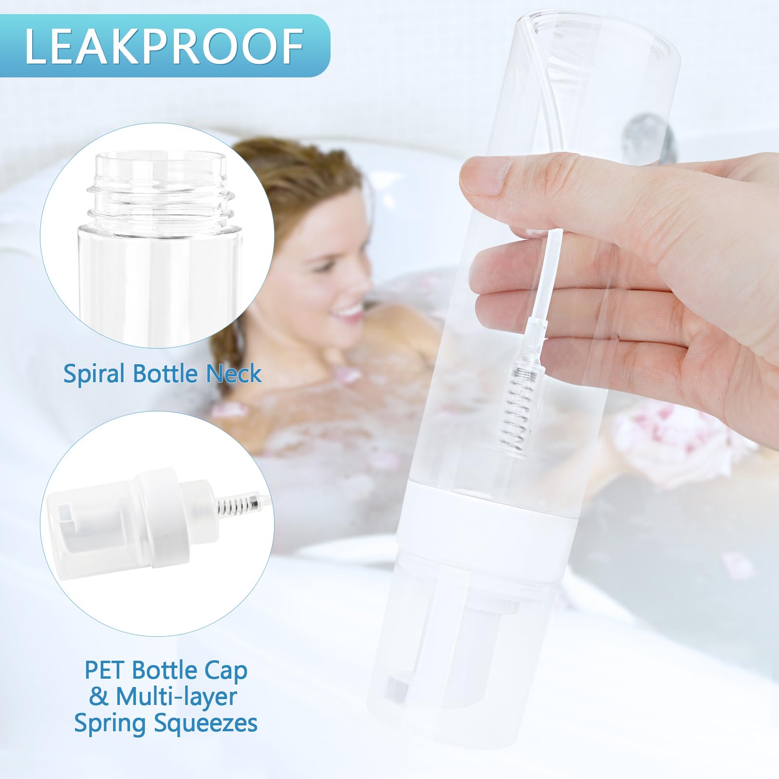 - 【Leak-free Design】Our empty foam dispenser bottle comes with a cap and tight threads inside that can prevent any leakage. So you can safely put the foam travel bottle in the bag without worrying about liquid leakage. Besides, we have also designed a groove at the bottom, which greatly improves its stability.