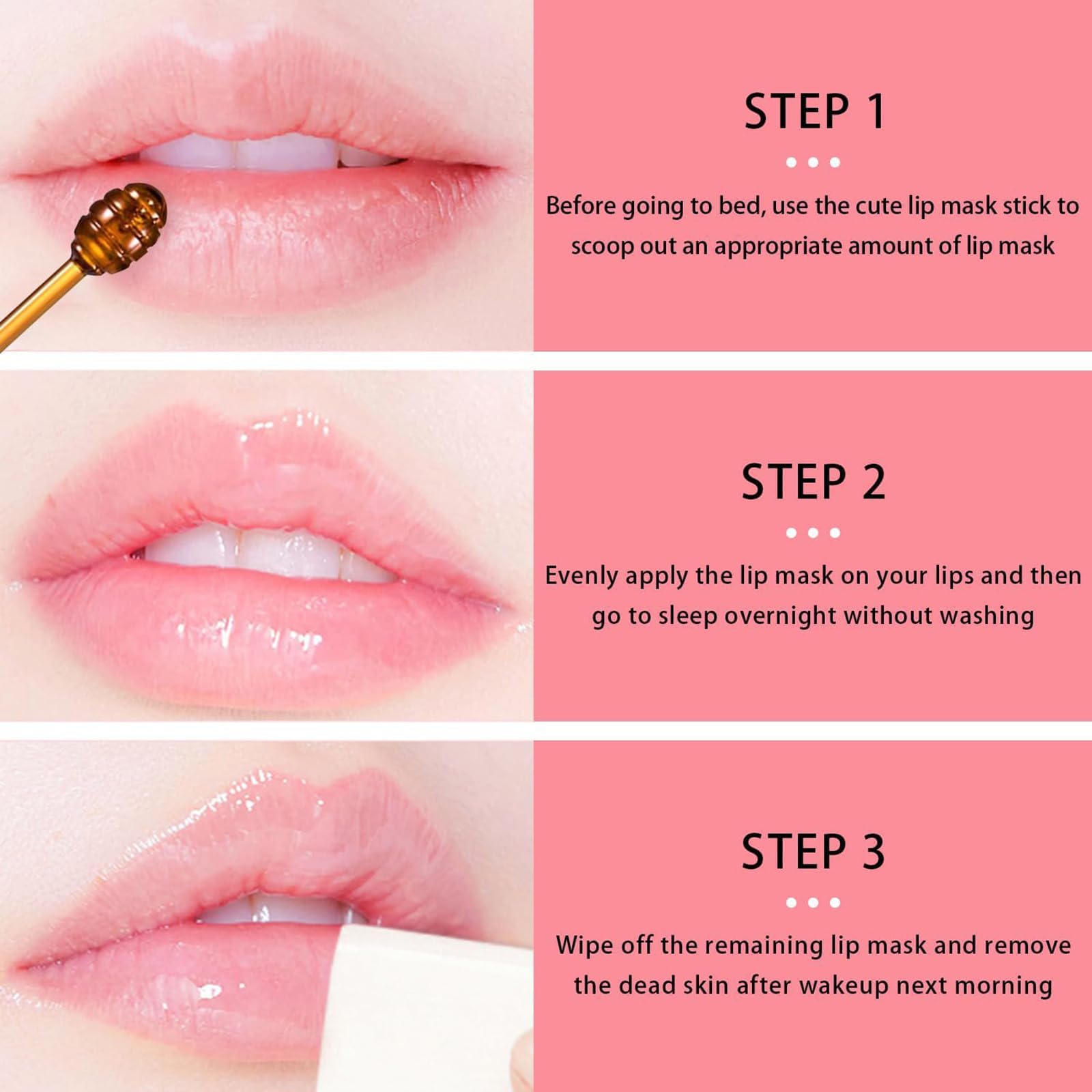 - Multiple Function: The lip mask pot offers dual care benefits. During the day, apply a thin layer of lip balm to moisturize your lips. At night, use it to repair damaged and dry lips, ensuring your lips look more beautiful and alluring the next day