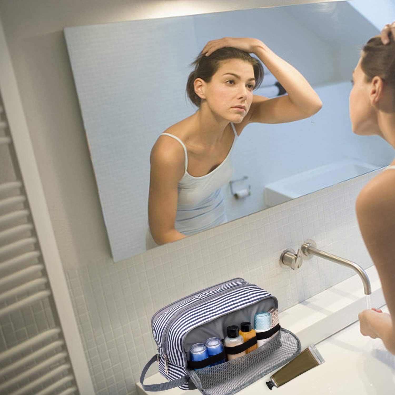 - 【EASY TO CARRY】 --- The side handle not only makes the travel bags for toiletries easy to carry but also can be used for hanging. Access toiletries easily and quickly!