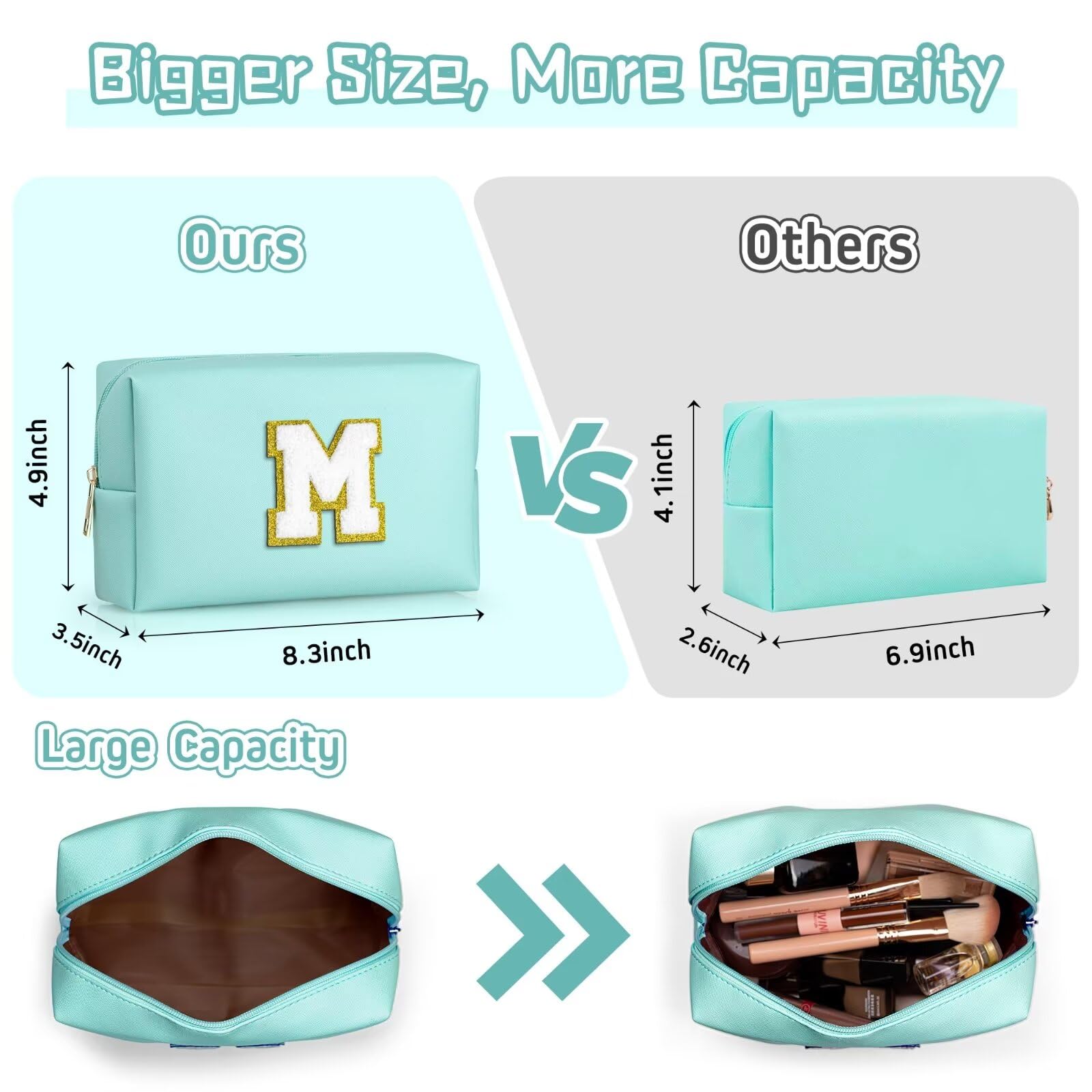 - PERSONALIZED INITIAL PATCH DESIGN: Preppy makeup bag boasts a gold glitter chenille patch that is not only stylish but also skin-friendly and comfortable to touch. The cute monogram patch has a strong personalized style, and it is sewn onto this cute makeup bag to brighten up the look and add a personalized touch