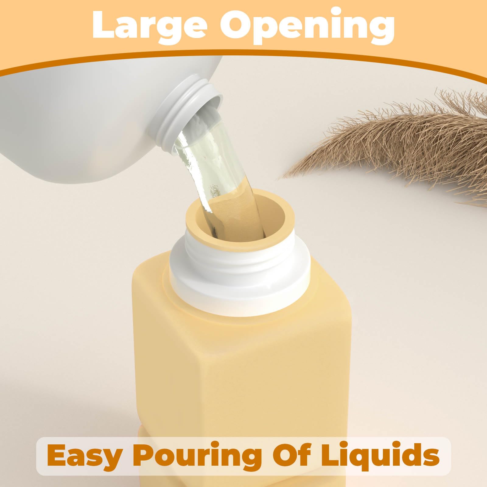 - LABEL AND CLEANING BRUSH -- The silicone travel bottles kit comes with a label that makes it easy for you to distinguish the liquid it contains. The dispenser bottle is designed with a large opening, which not only facilitates the inflow of thick liquids, but also facilitates the cleaning of the dispenser bottle. The cleaning brush we included makes cleaning easier and cleaner.