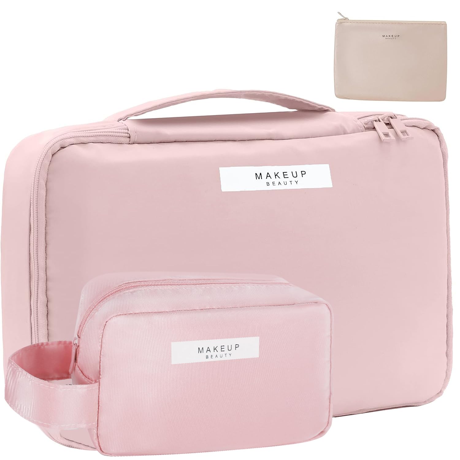 Travel Makeup Bag Cosmetic Bag Makeup Bag Toiletry bag for women and men (Pink-3pcs)