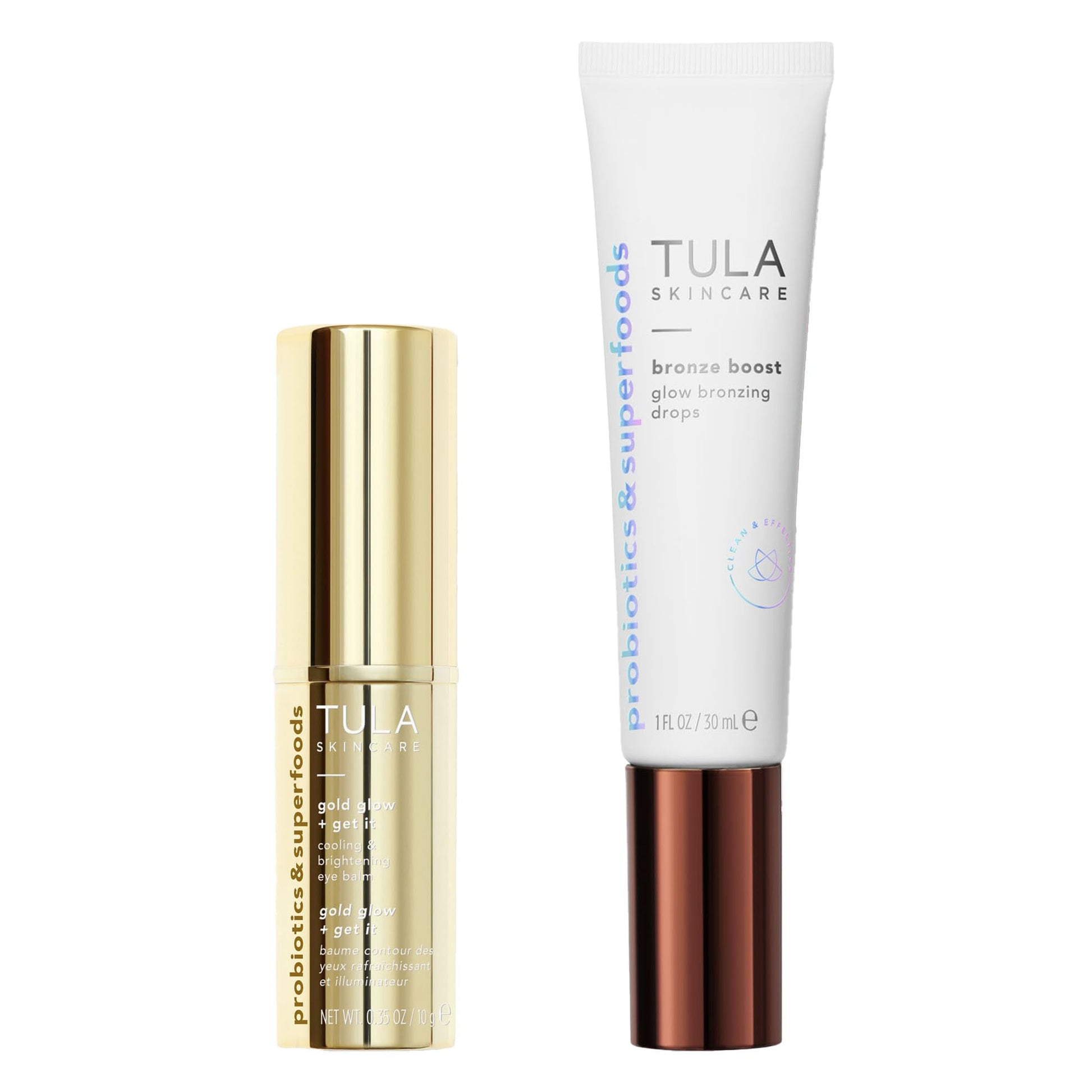 TULA Skin Care Bronze Boost Glow Bronzing Drops 1 Fl Oz. and Eye Balm Gold Glow 0.35 Oz., 2 Piece Set